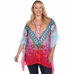 Discount π€© White Mark Plus Size Tie Up Neckline Caftan Top π―