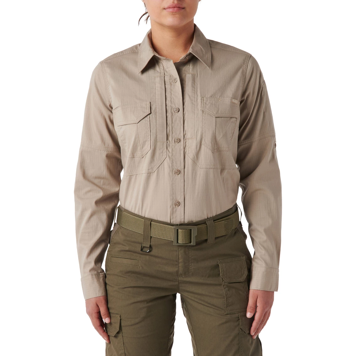 The Women’s ABR Pro Shirt Long Sleeve from 5.11 offers heavyweight performance in a lightweight and durable Flexlite mechanical stretch fabric. The ABR Pro has a large Ready Pocket at each chest, patch pockets (with pen guides) and pen pockets on the left sleeve. A Teflon finish helps keep stains and soil from sticking to the shirt. Full button front placket, adjustable cuffs and roll-up sleeve keepers. Always Be Ready for whatever mission you face in the ABR Pro Shirt. Style: 62420001.