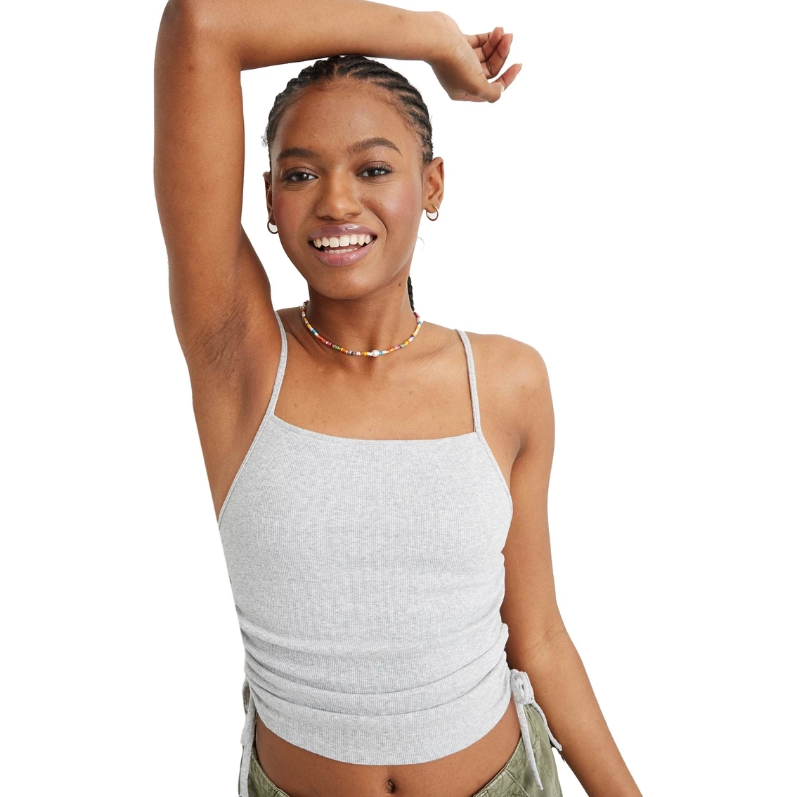 Crop it like it’s hot in the Ruched Cropped Tank Top from Aerie. The sleeveless tank top features a square neckline and ruching. Style: 44952816158.