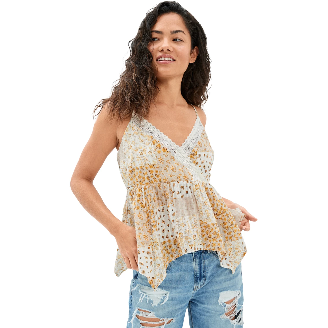Get caught in the sun in this super cute babydoll cami from American Eagle, made loose for free and flowy vibes. The v-neck collar adds a classic touch. Style: 23514681.