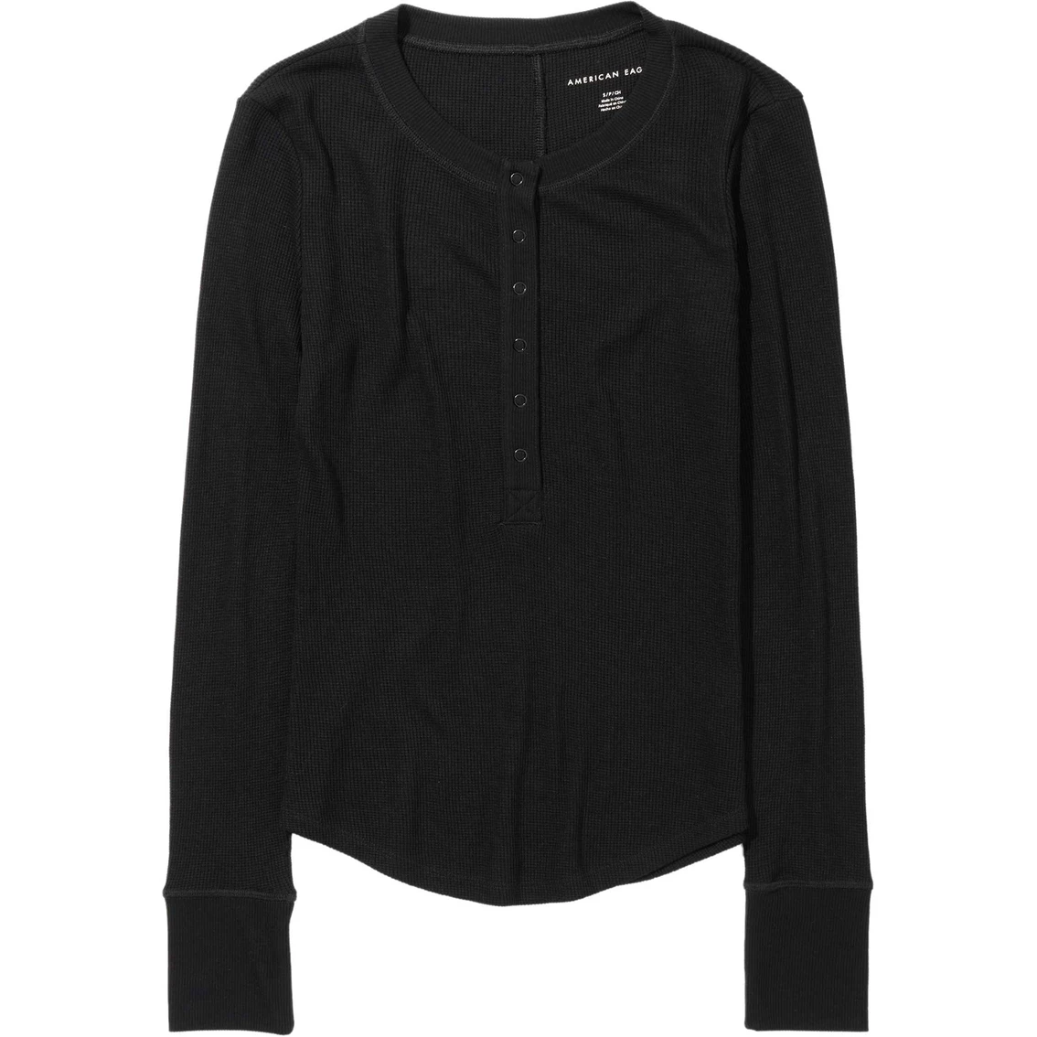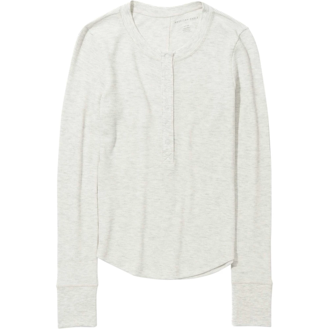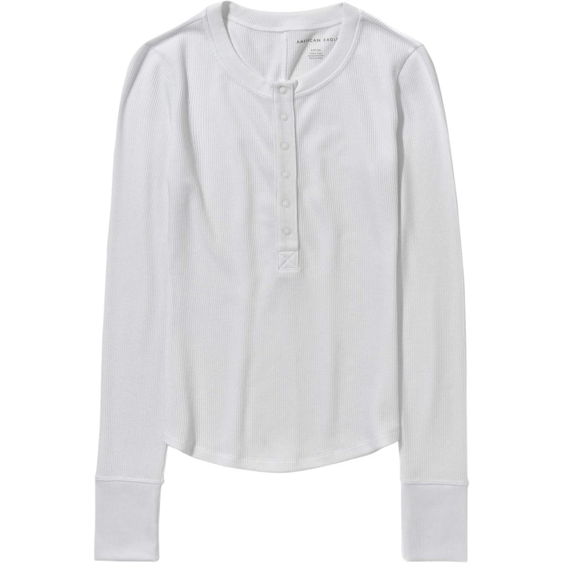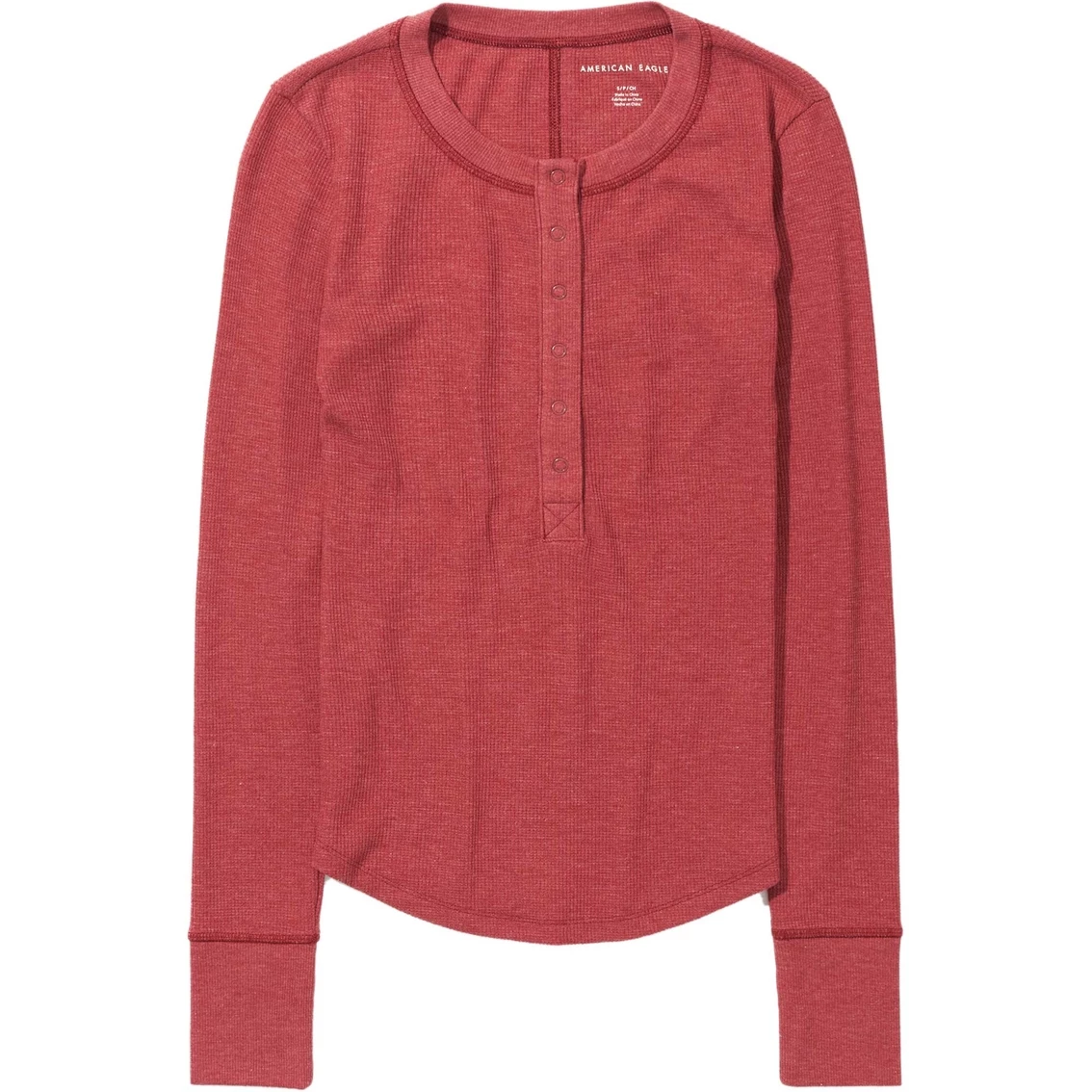 This American Eagle thermal shirt is perfect for the colder months! It has long sleeves and a classic henley button front. Style: 3376-8538.