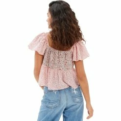 This American Eagle blouse features a v-neck and a babydoll silhouette for a romantic look you’ll love. Make it yours! It’s made from a soft cotton blend and has a v-neck collar and short sleeves. Style: 23514685.