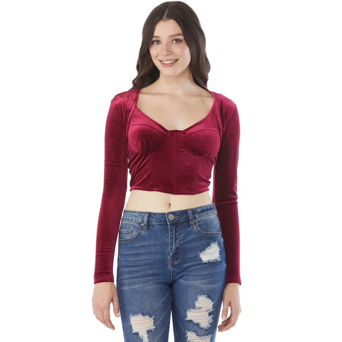 You will love the look and feel of the romantic Jen Top from As You Wish. The crop top is crafted from red velvet for a flirty fit and feel. Style: MT7209903DMK.
