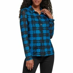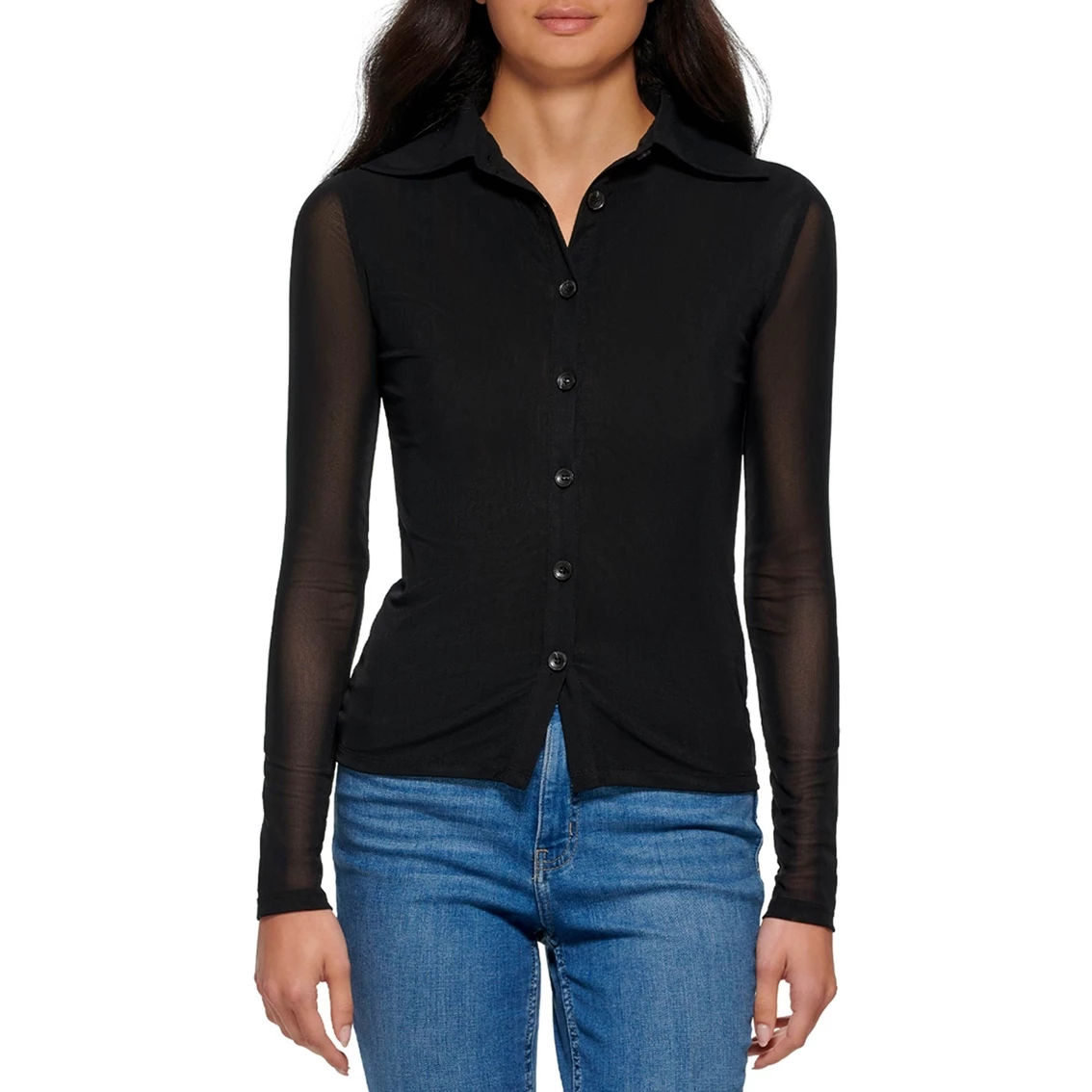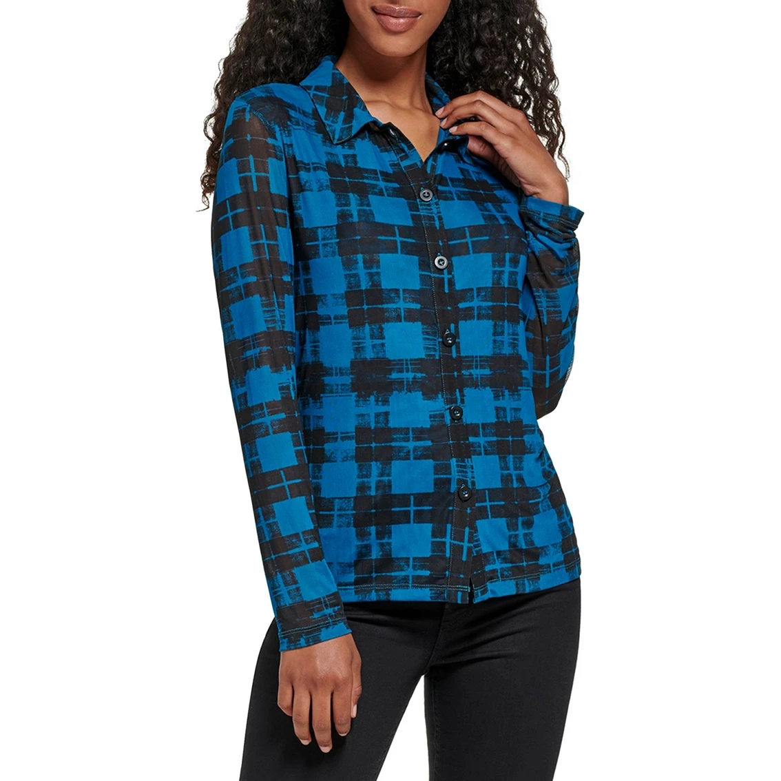 Freshen up your blouse collection with this Calvin Klein button up blouse. It’s crafted from a mesh fabrication and features a shirt collar. Pair back to your favorite bottoms to dress up or down.