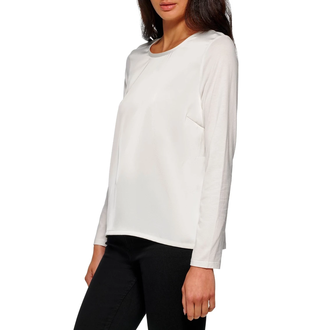 Mix up your look with this long sleeve top from Calvin Klein featuring a mix media fabrication, dress up or down for your daily activities. Style: M2VHY083.