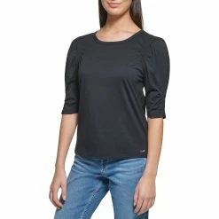 Accentuate your style with the Calvin Klein Smocked Shoulder Top. This smocked shoulder sleeve adds flair to your everyday attire. Pair this short sleeve top with denim, shorts or your favorite skirt. Style: M2EHV069001.