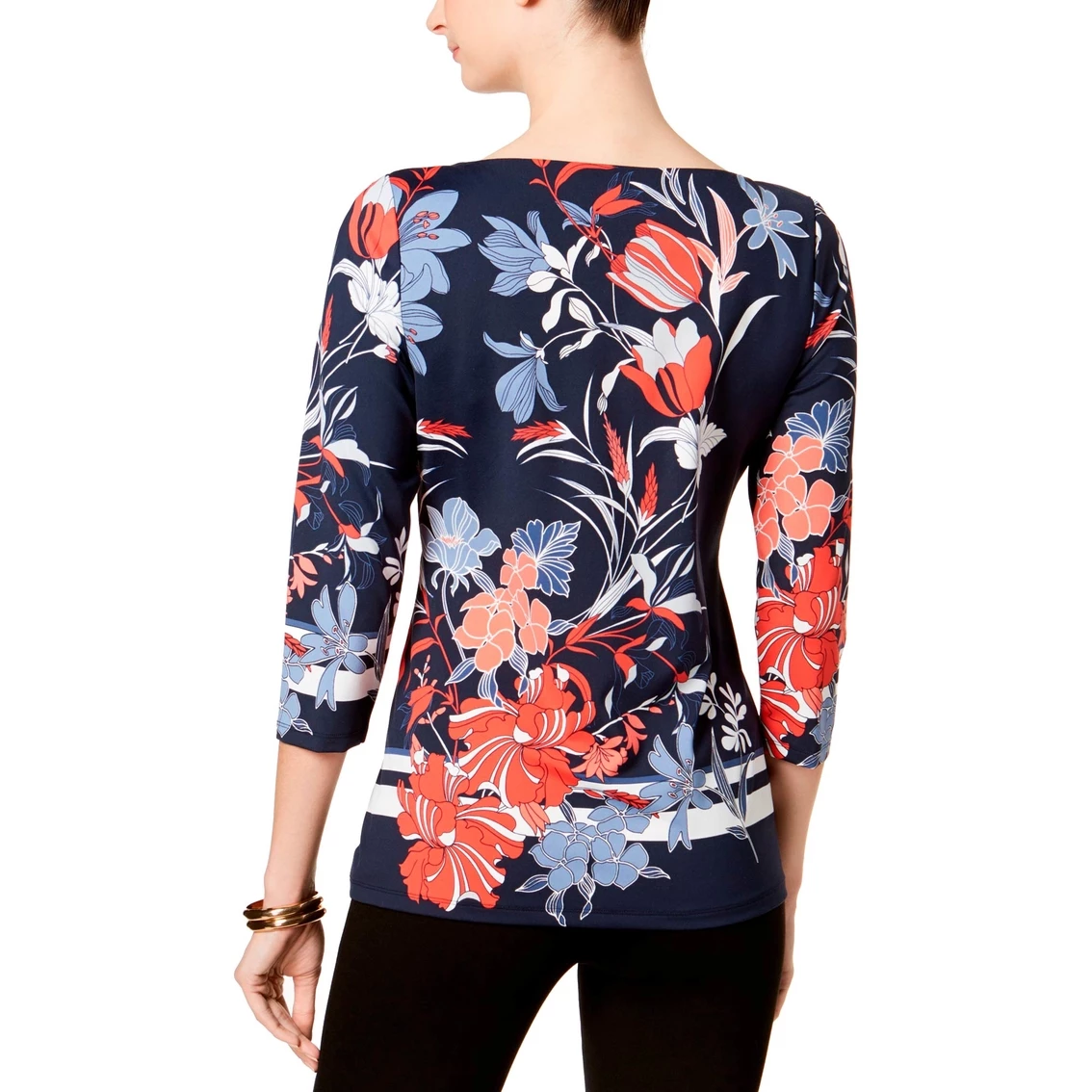 The unique cutout at the neckline of Charter Club’s petite printed top is detailed with silvertone grommets linked by a sleek, solid strap. Due to generous sizing, Charter Club suggests sizing down for the perfect fit. Style: A100004313P.