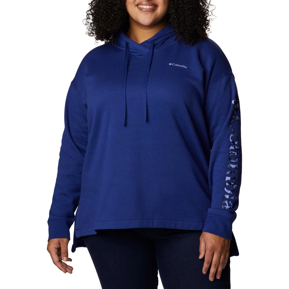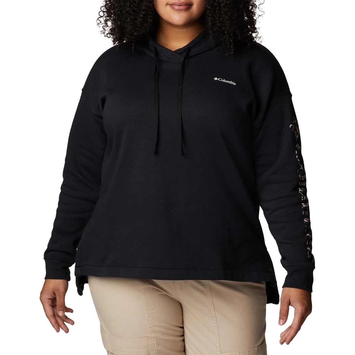 This Columbia Plus Size Trek Special Graphic Hoodie is comfort in its truest form, with a soft, stretchy feel and a drawcord hood. Columbia logotype runs down the sleeve. Logo at left chest. Made of polyester. Machine wash. Style: 2013152432.