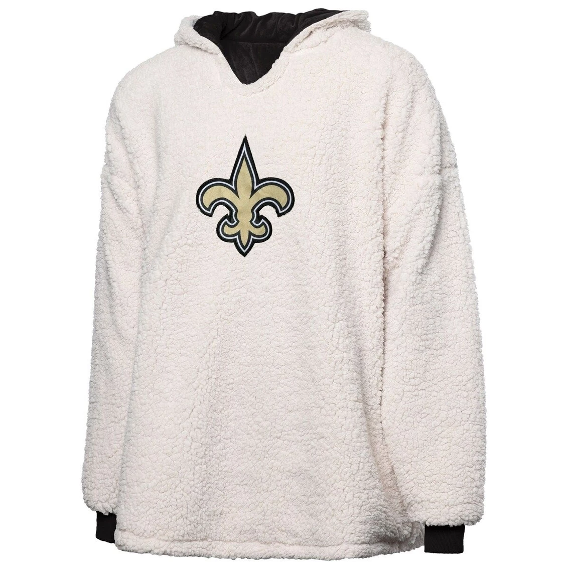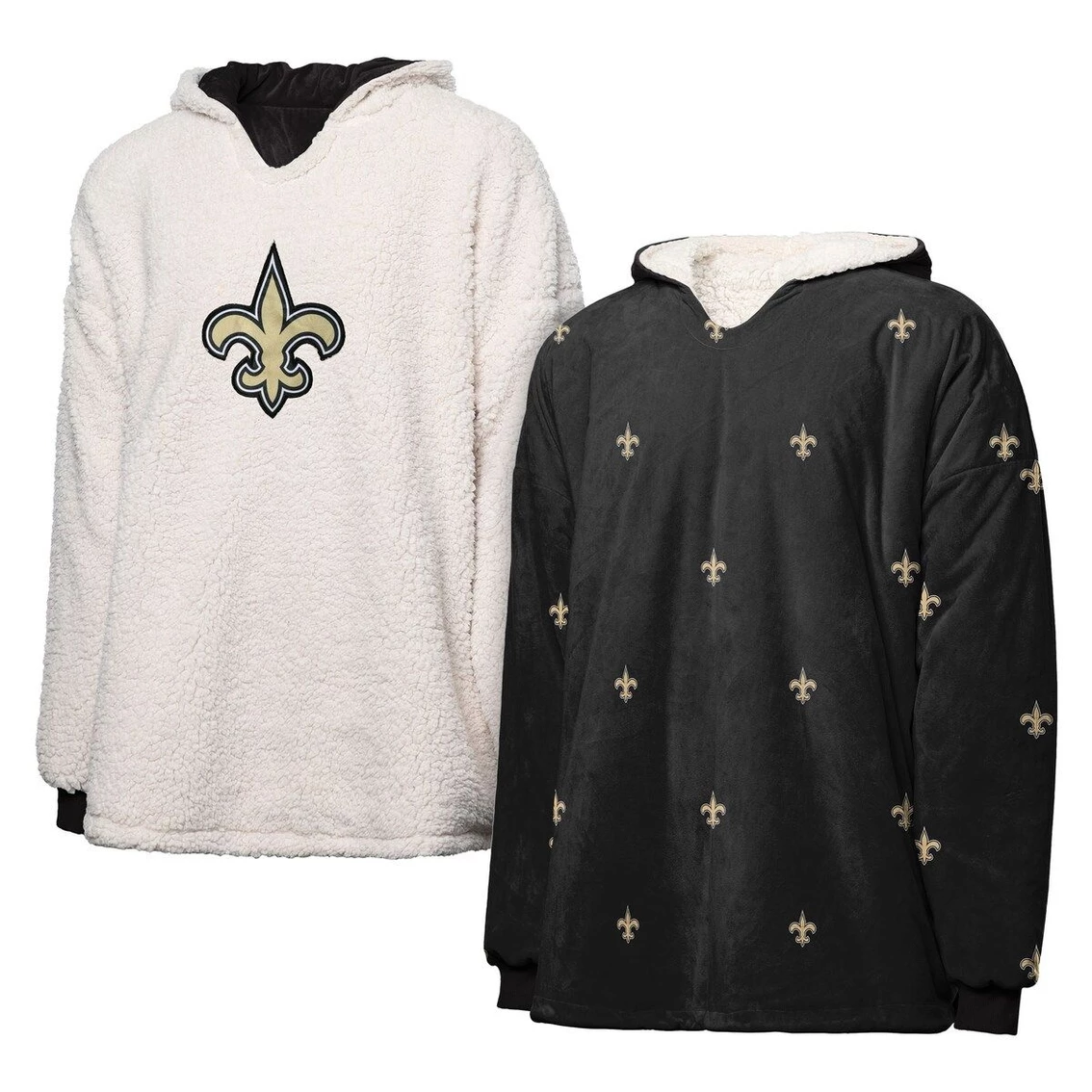 - Take comfort to the next level with this New Orleans Saints Repeat Print hoodeez from FOCO. This oversized reversible hoodie features a bold allover design on one side and a prominent logo on the other. Stay warm and cozy during the next New Orleans Saints game with the soft Sherpa lining.