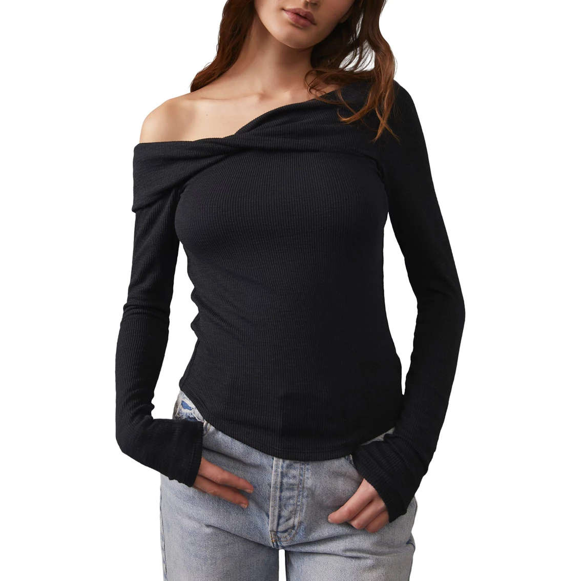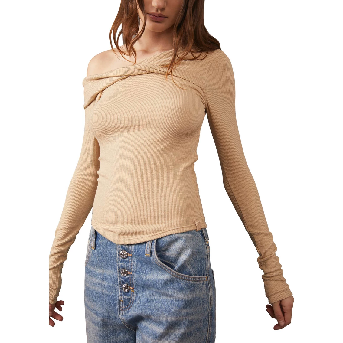 This long-sleeve tee from Free People features a slim silhouette and an asymmetrical neckline. This basic top makes an excellent addition to your wardrobe and is easy to incorporate into any outfit.
