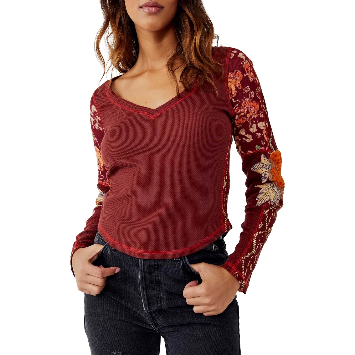 Take your layering game to the next level with the Amara Top from Free People. This henley-inspired version features print detailing on the sleeves for added dimension. Style: OB1556811001.