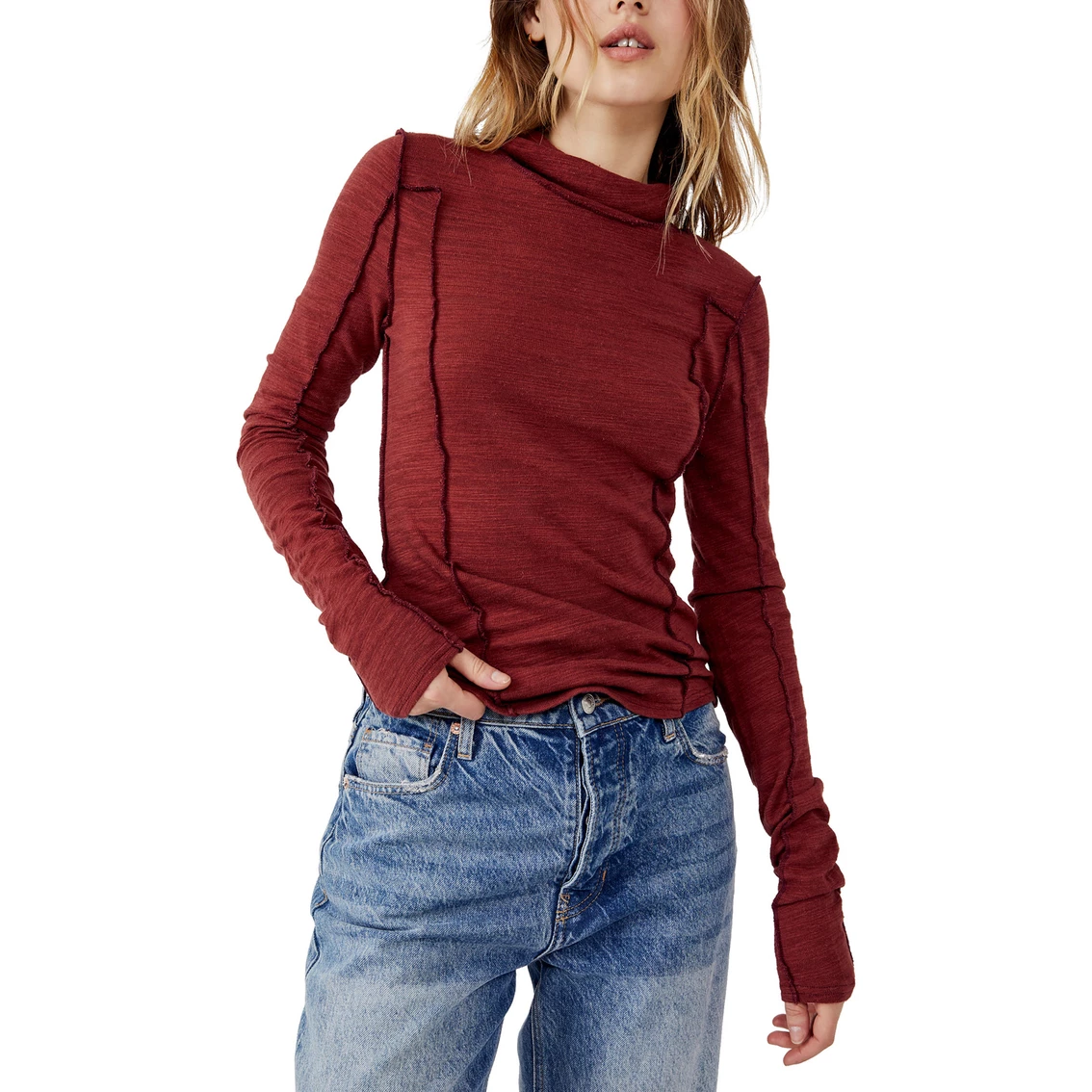 From Free People this classic lightweight long sleeve features exposed seam detailing and a mock neck. Style: OB1582226001.