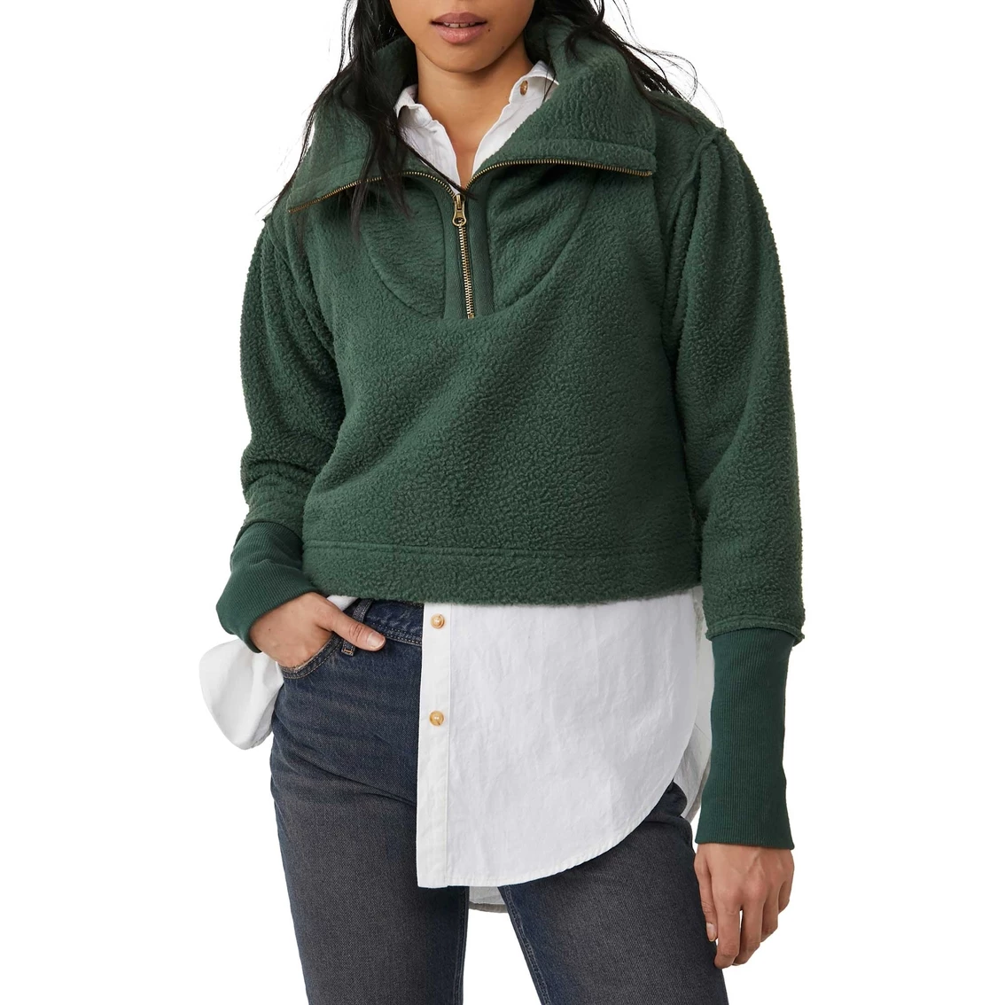 This quarter zip from Free People is an effortless essential for any activity in a soft fleece fabrication with an easy slouchy silhouette that hits right at the waist. Style: OB1563333103.
