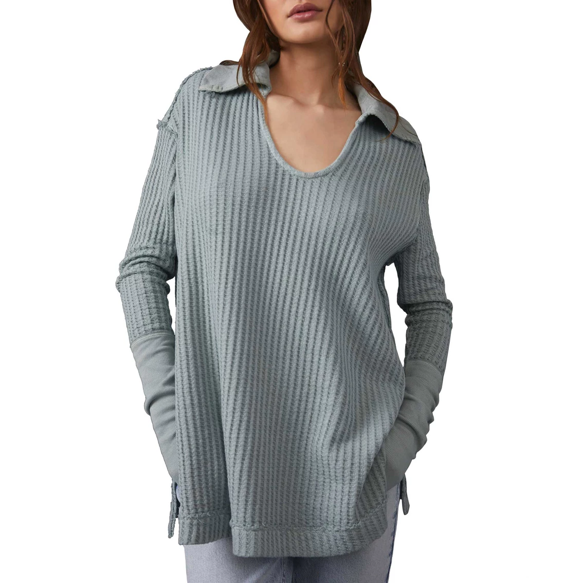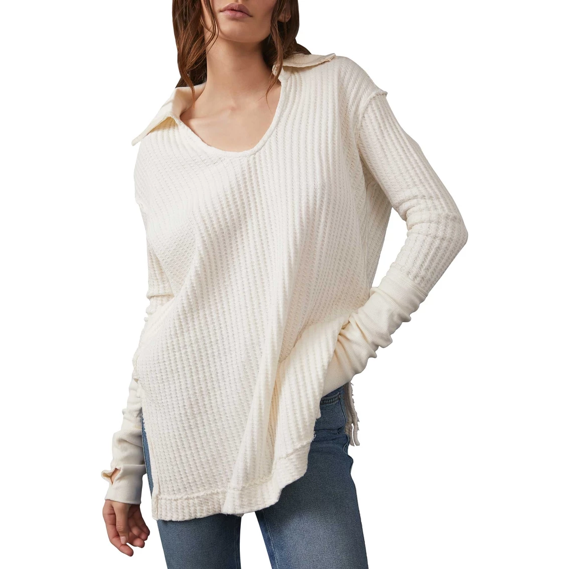 The Raymond Thermal from Free People with become your new favorite pullover! Featured in a forever classic, waffle knit fabrication, top includes a collared neckline, dropped shoulders, side slits at bottom and lower back hem for added shape. Oversized, slouchy fit. The definition of a true effortless essential, this goes-with-anything, thermal-inspired pullover is sure to be your new go-to. Style: OB1542208.