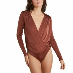 Designed in a slinky long sleeve silhouette, the Turnt Bodysuit from Free People is a cross-front body suit with a plunging V-neckline and pleating detail throughout. Bodysuit features snap button closures at the gusset and attached sheer lace undie with a cheeky fit. Style: OB1064738.