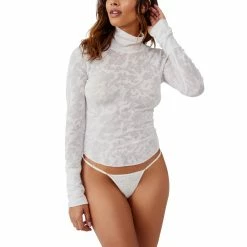Lovely for layering, from Free People this perfect long-sleeved top is featured in a slim, mockneck silhouette with a semi-sheer design. Style: OB1557007001.