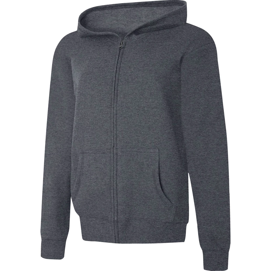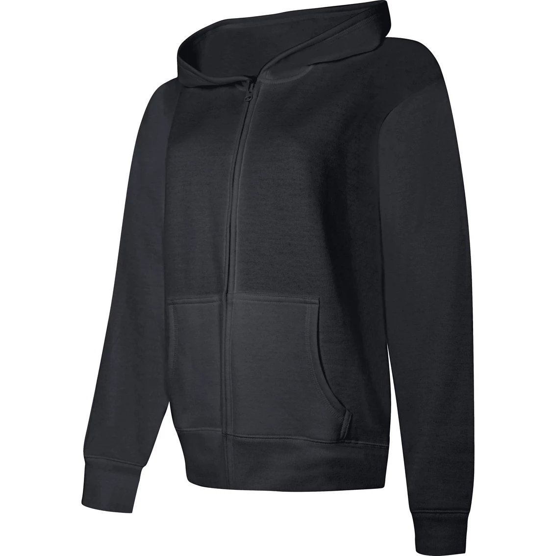 You will love this Hanes women’s fleece hoodie. It has a full zip front with a kanga pocket and features a rib-knit waistband and long-sleeve cuffs. This fleece top is made from a cotton blend so it is soft and comfortable. Machine washable. Style: 4692.
