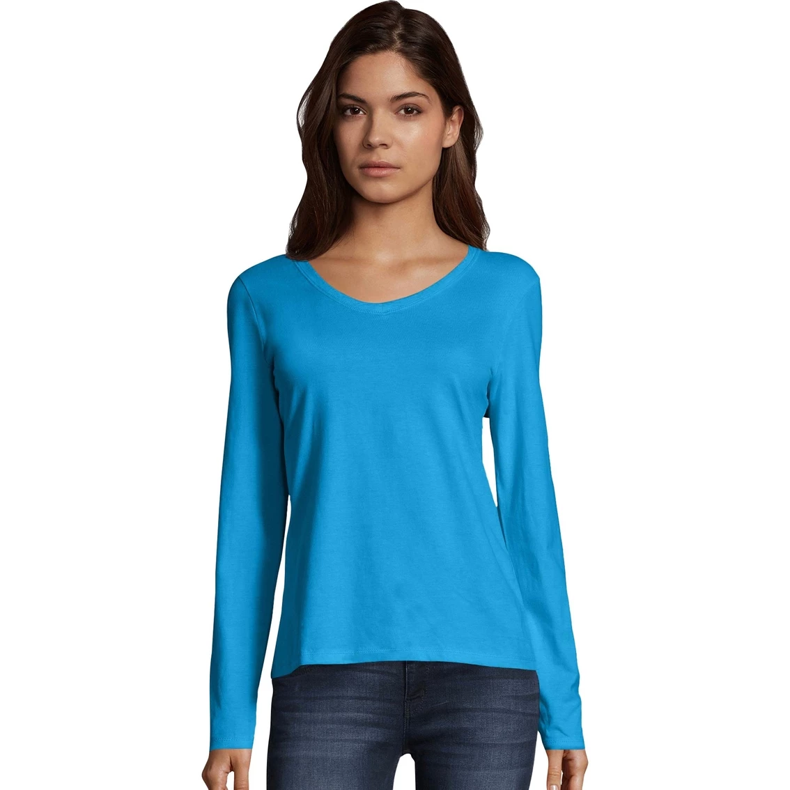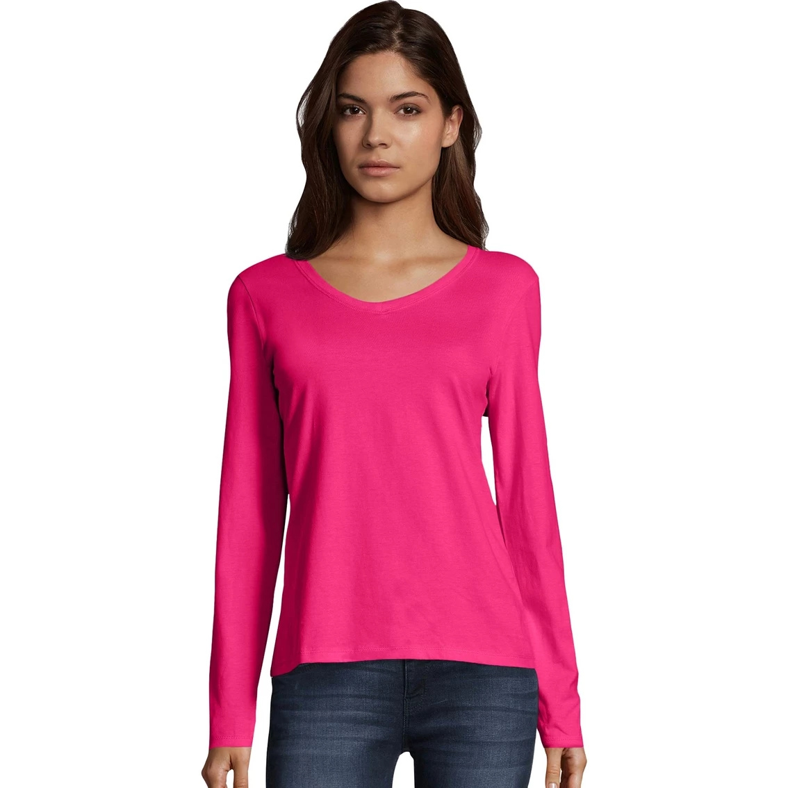 This Hanes tee for women is stylish, versatile and comfortable. A definite must-have for any wardrobe, it features long sleeves and a V neckline. Style: 09142.