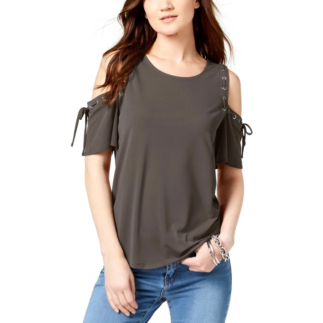 INC International Concepts makes the cool cold-shoulder cutouts on this petite top stand out with grommets and lace-up trim. Scoop neckline. Elbow sleeves with cold-shoulder cutouts. Hits at hip. Style: A100014891P.