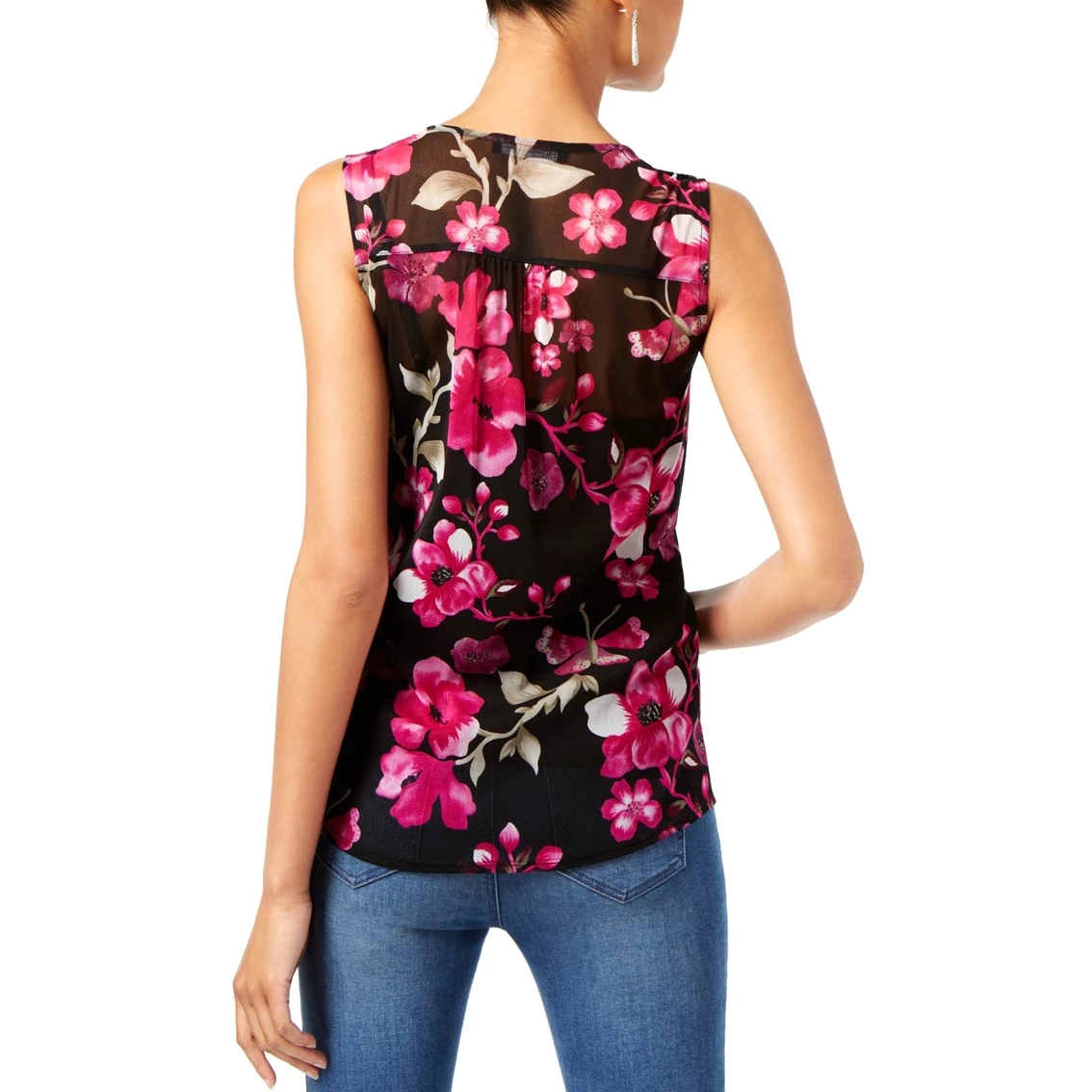 INC International Concepts beautifies your look with this sleeveless mesh stunner, designed with gleaming zipper trim at the neckline and a ruffled front.