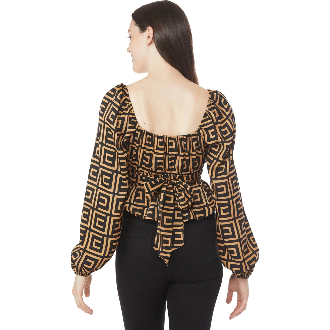 Your young lady will love this Inspired Hearts Juniors Geo Print Top. With long sleeves and a sweetheart neck, this top features a bow in the back. Unique and distinctive, it’s a must-have for your wardrobe. Style: 1COMW671BCM.