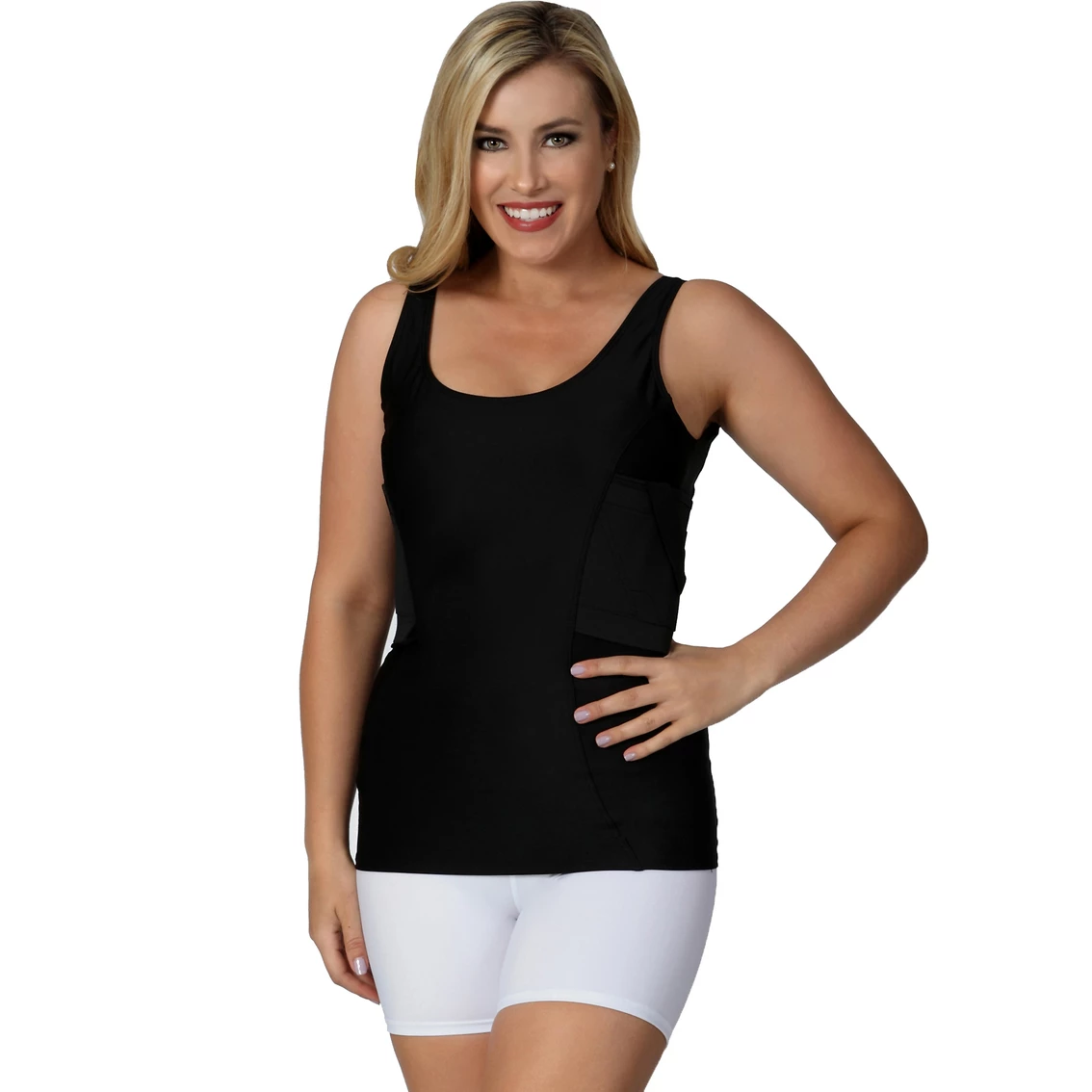 I.S.Pro Tactical Womenβs concealed carry compression scoop neck tank top is made with their smart fabric and is comfortable, secure, and discreet under multiple wardrobe styles including T-shirts, blouses, jackets, blazers, and uniforms. Durable dual under arm elastic holsters for convenience of right or left hand, extra holster can carry extra magazines, documents, handcuffβs, cell phone, wallet, etc. Compression tank has a second skin fit, offers 4-way stretch and does not restrict movement. Aids in posture, low back, and core support, slims and smooths torso. Snug-fit to help to prevent muscle fatigue and/or injury during daily routines. Fabric is anti-order helps you stay cool and dry all day long. Comfortable for extended wear. The ultimate solution for concealed carry apparel that is comfortable, discreet, safe, and secure. ISProTactical concealed carry compression garments are beneficial for federal agents, military personnel, police and undercover officers, security personnel first responders. Style: WGT038.
