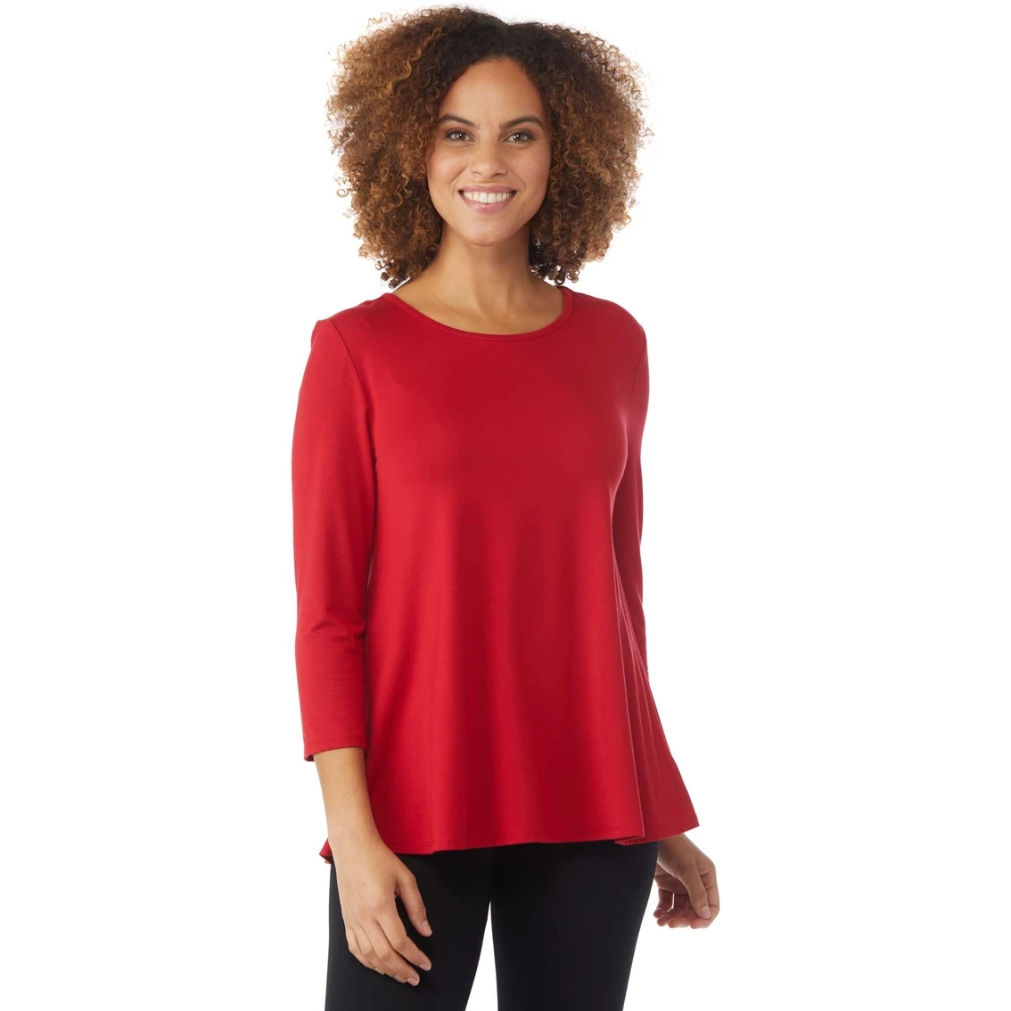 Designed exclusively for the Exchange, JW offers quality designs for great prices. Featuring 3/4 sleeves and a babydoll silhouette, this knit top is the perfect basic to add to your wardrobe. It features stretch fabric for comfort, and is specifically made from rayon and spandex jersey fabric. Machine washable. Imported. Style: JF7049H22.