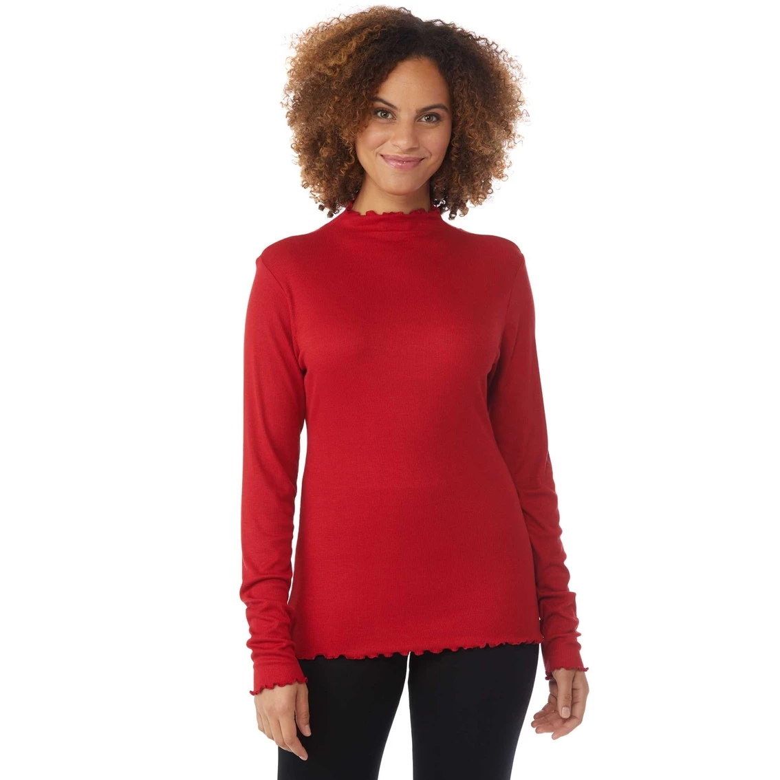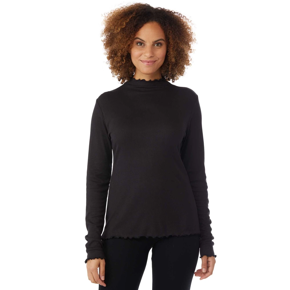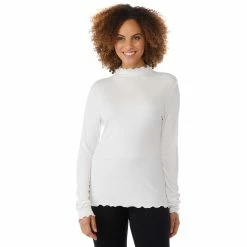 Designed exclusively for the Exchange, JW offers quality designs for great prices. Featuring long sleeves and adorable lettuce edges at the sleeves, collar and hem, this ribbed knit top is the perfect basic to add to your wardrobe. It’s made from rayon and spandex fabric. Machine washable. Imported. Style: JAT3067.