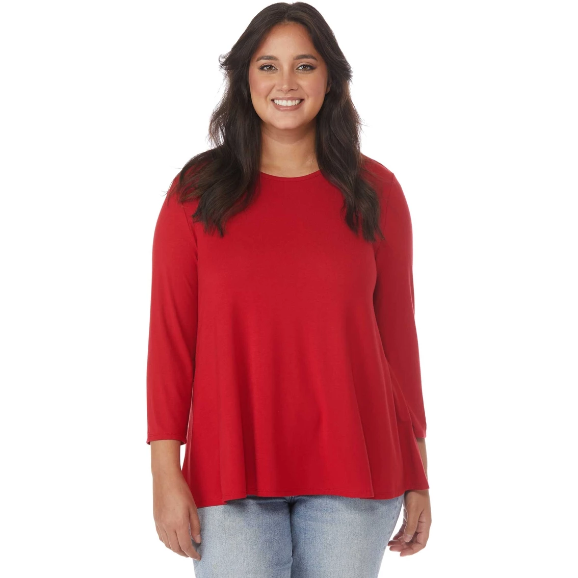 The JW 3/4 Plus Size Sleeve Babydoll Knit Top is made from a cozy rayon/span jersey blend that will make you never want to wear any other top! Machine wash. Imported. Style: JF7049H22PLA.