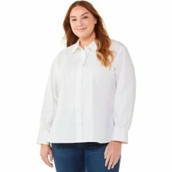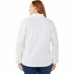 The JW Plus Size Boyfriend French Cuff Blouse is a French cuff top. This front button shirt is made with cotton and spandex fabric for stretch and lasting all day comfort. Hand wash for ease of care. Style: PC5556BRT.