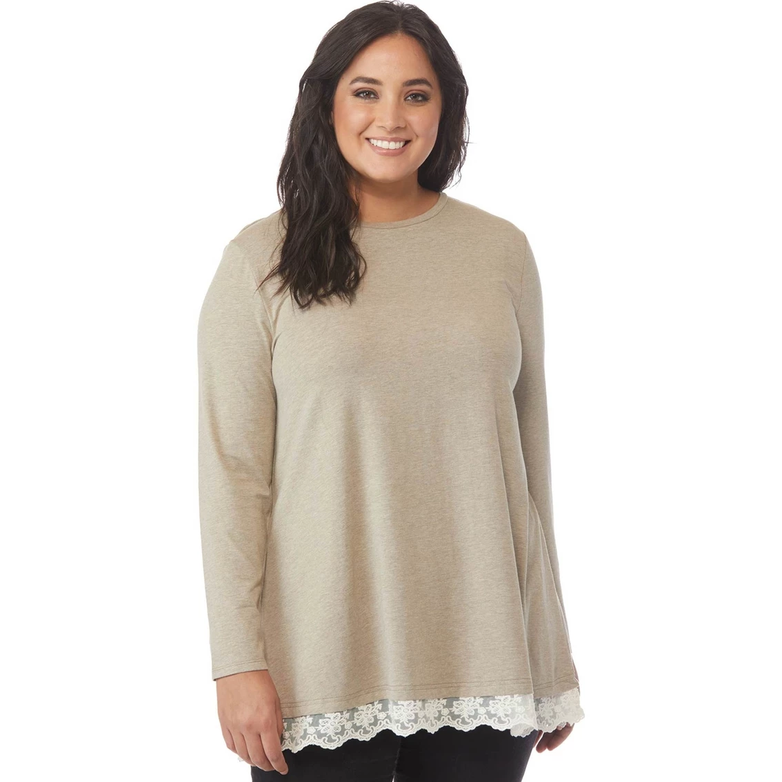 The JW Plus Size Crew Neck Lace Trim Tee is made from a comfy cotton/rayon/ span jersey blend that will feel great and look better. Machine wash. Imported. Style: JAS1213WA.