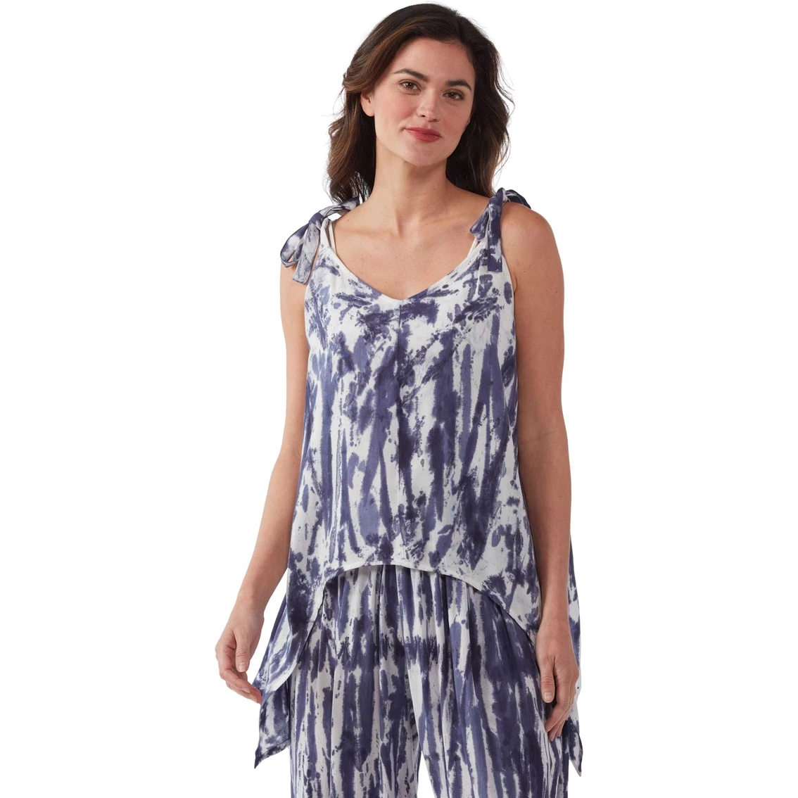 This JW Tie Dye Top is all about the details. The sharkbite top measures 30 in. to the longest point and 20 in. down the center front. Made from 100% rayon, this summer ready sleeveless shirt is easy to care. Pair with shorts or a skirt to complete the look. Style: 5940M137AA.