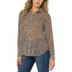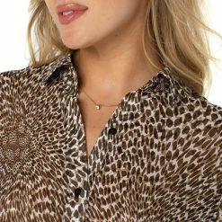 This button front blouse features our exclusive mini abstract animal print. Dress it up or down for everyday wear! Style: LM8832HD4P97962.