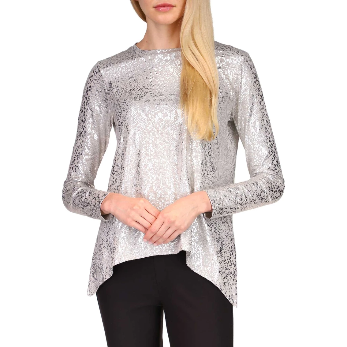 A cool shark bite design, crewneck and long sleeves style this Michael Kors knit top that you’ll make an instant favorite. This warm top is great for layering or on its own. Style: MH150GN41K.
