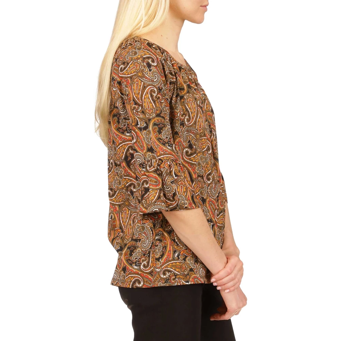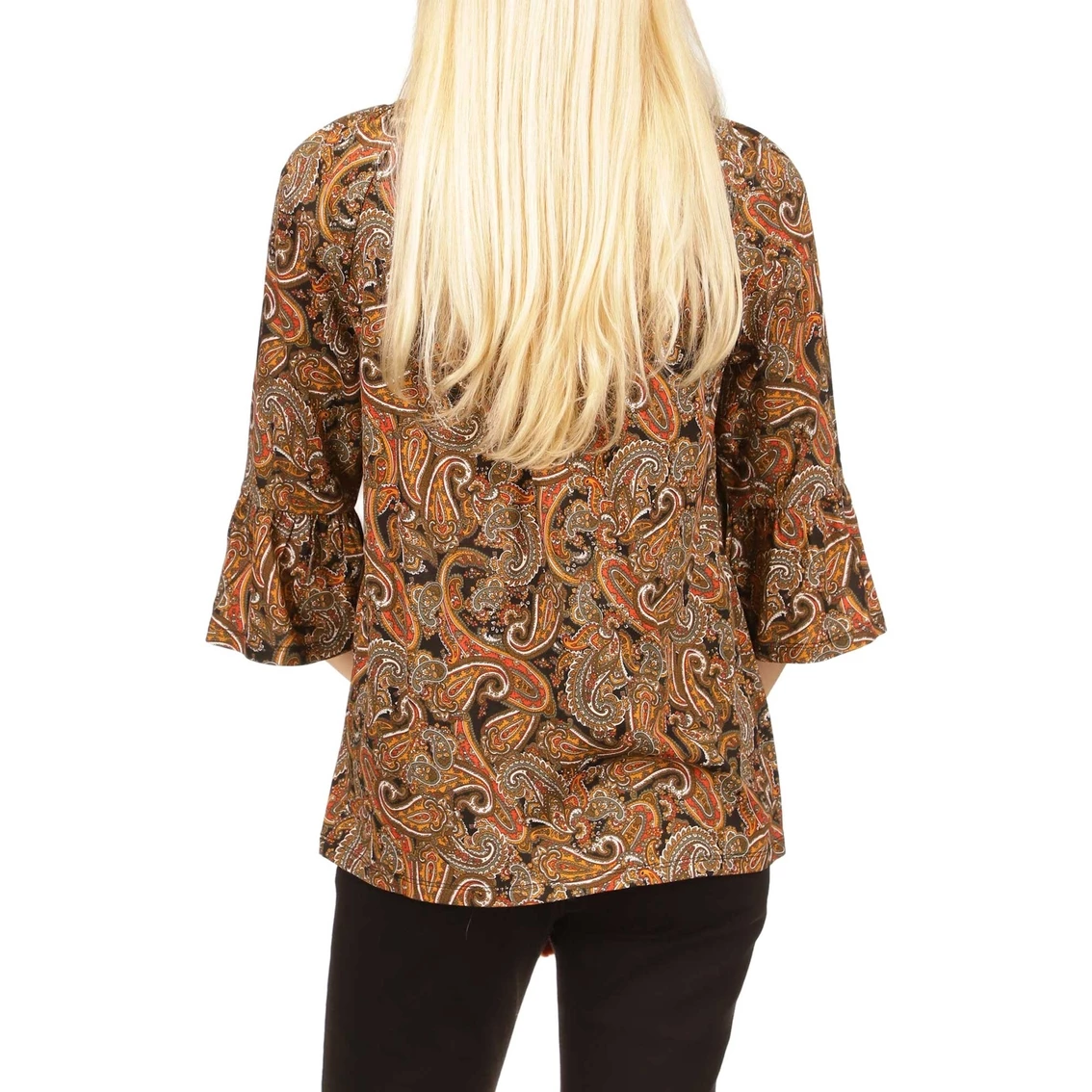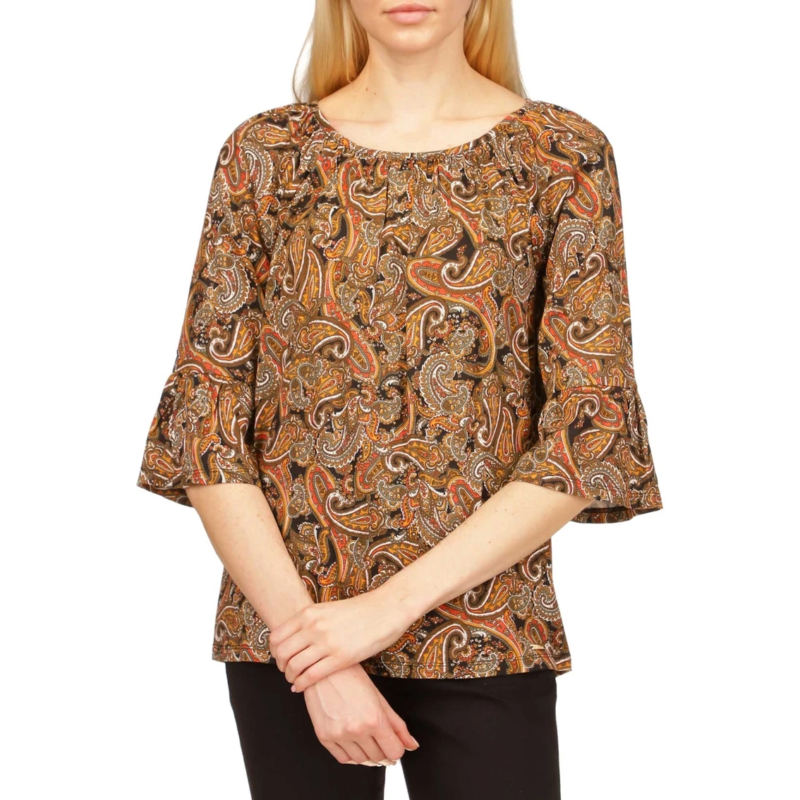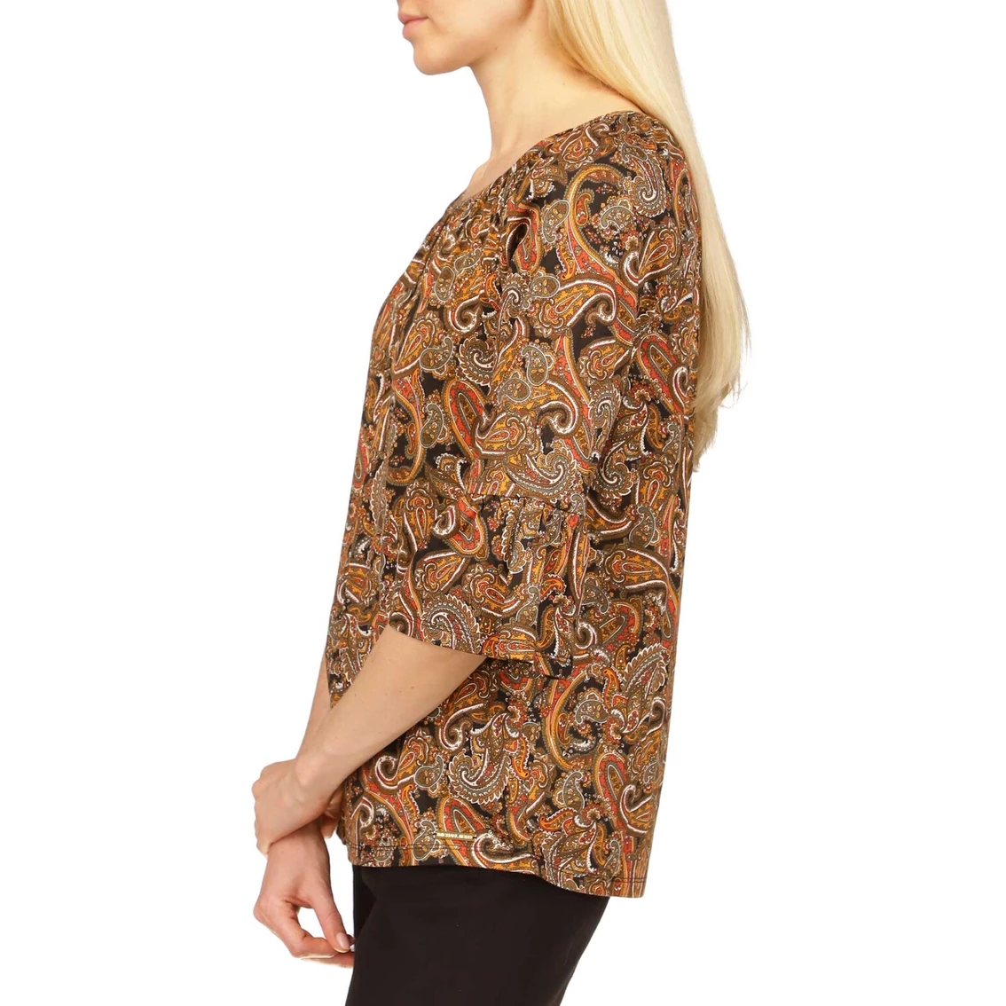 Enrich your wardrobe with this intricate paisley-flare-sleeve top from Michael Kors. This top works with a number of looks, from denim to a sleek, sophisticated skirts. Fall for the flare with this wardrobe essential. Style: MF25LGA7H4889.