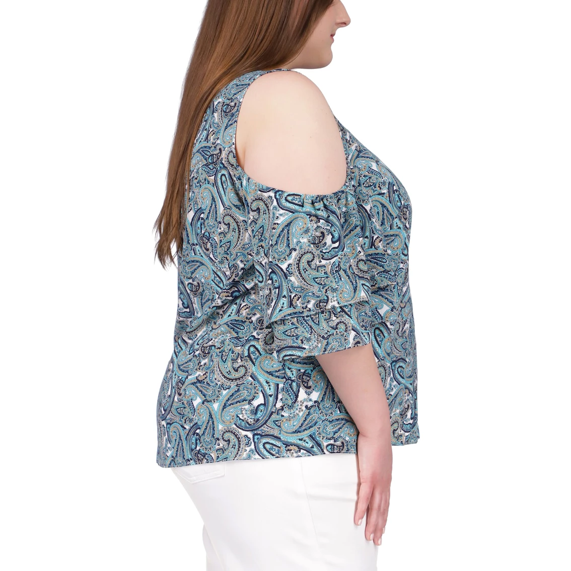 Michael Kors gives the classic paisley print a pretty update with this flowing plus size top. Cold-shoulder cutouts turn on the charm. Style: WU24LG56ER.