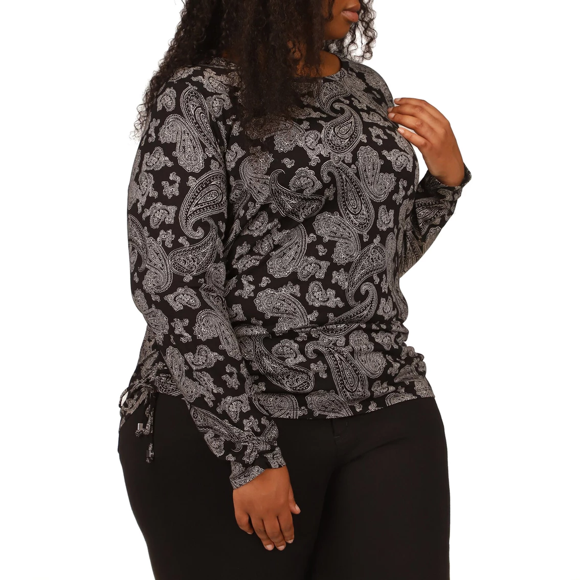 Looking cute is a cinch in this printed plus size top from Michael Kors, featuring ruched details. Pair it with your favorite denim for a fun casual look. Style: WF250DP7HA.