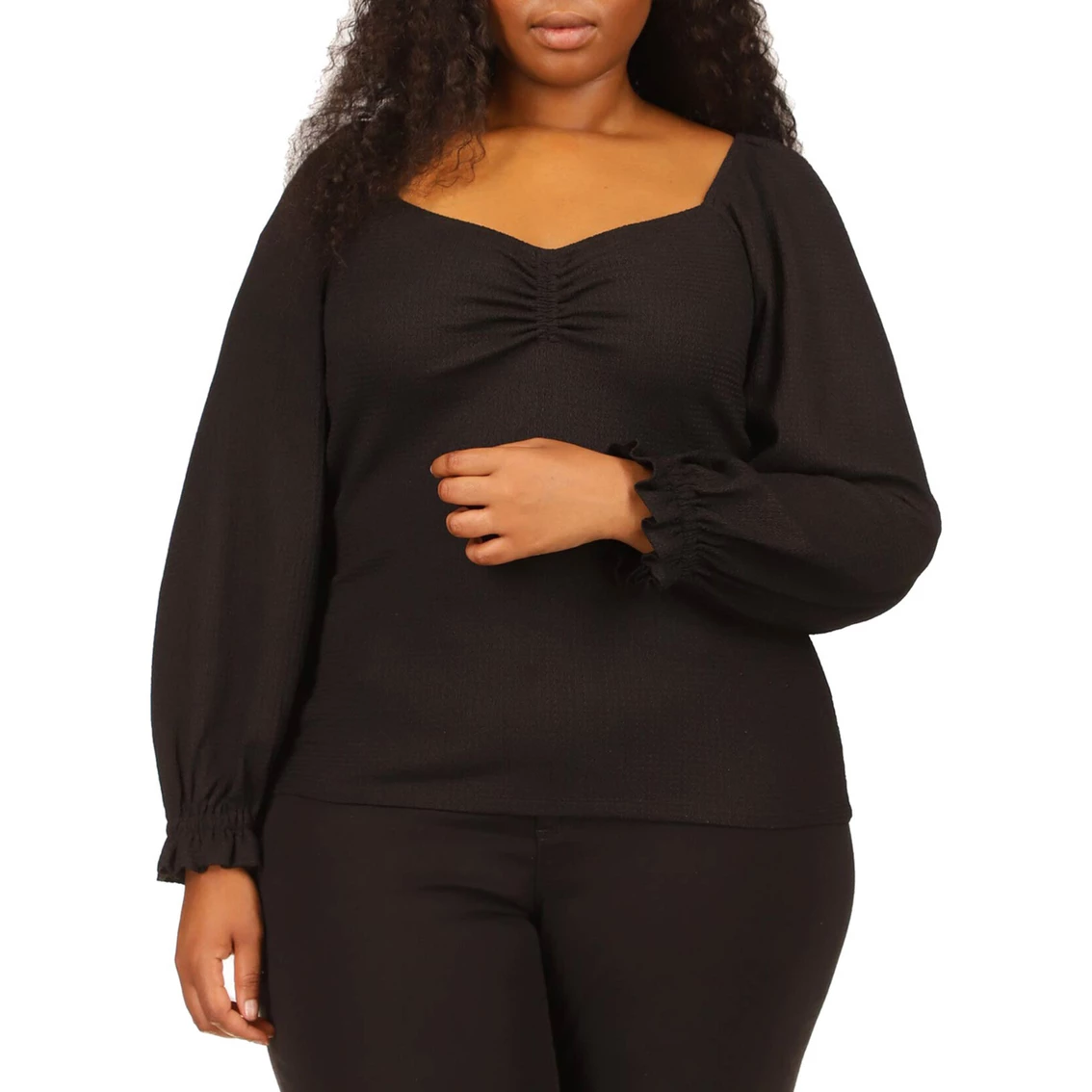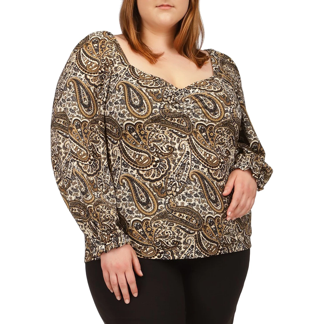 Steal all the compliments wearing this Michael Kors Plus Size Ruched Long Sleeve Top. Pair this top with jeans or any of your favorite bottoms. Make this stylish top your new go to. Style: WF250V84N5001.