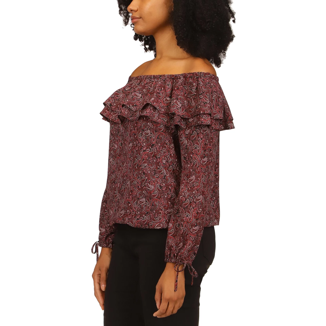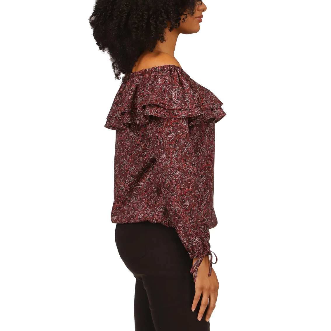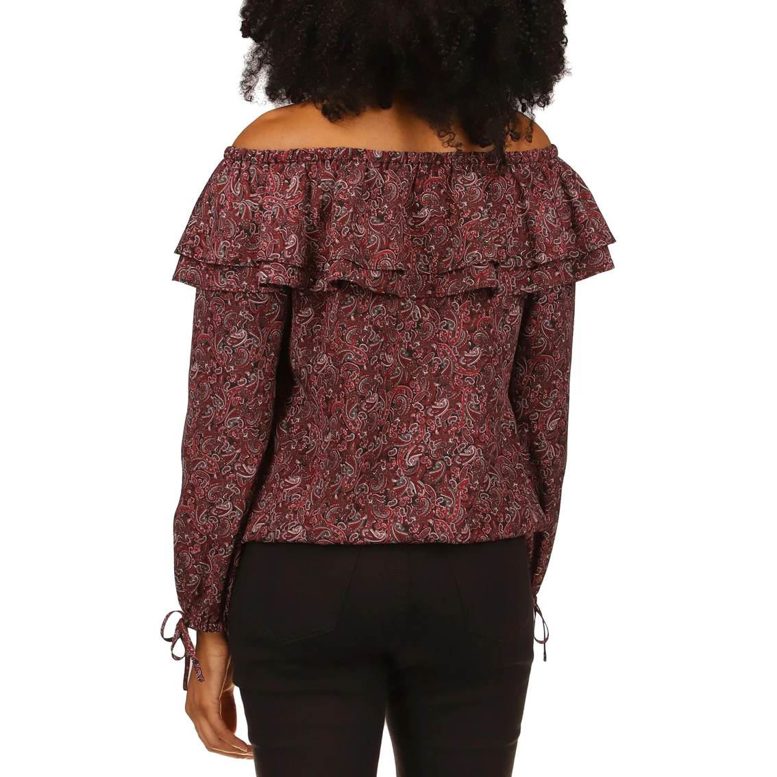 Looking for wardrobe update? Meet the Michael Kors Poplin Paisley Ruffle Top. This Michael Kors updated ruffle top is a poplin and on-trend in this season’s chic paisley print. Features long sleeves. Style: MB94BF87QP667.