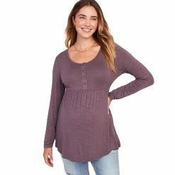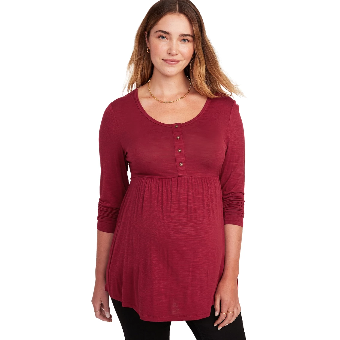 This Old Navy maternity top is made of a soft-washed slub-knit jersey with comfortable stretch for your growing belly. The seamed waist with peplum babydoll hem offers a flattering fit.