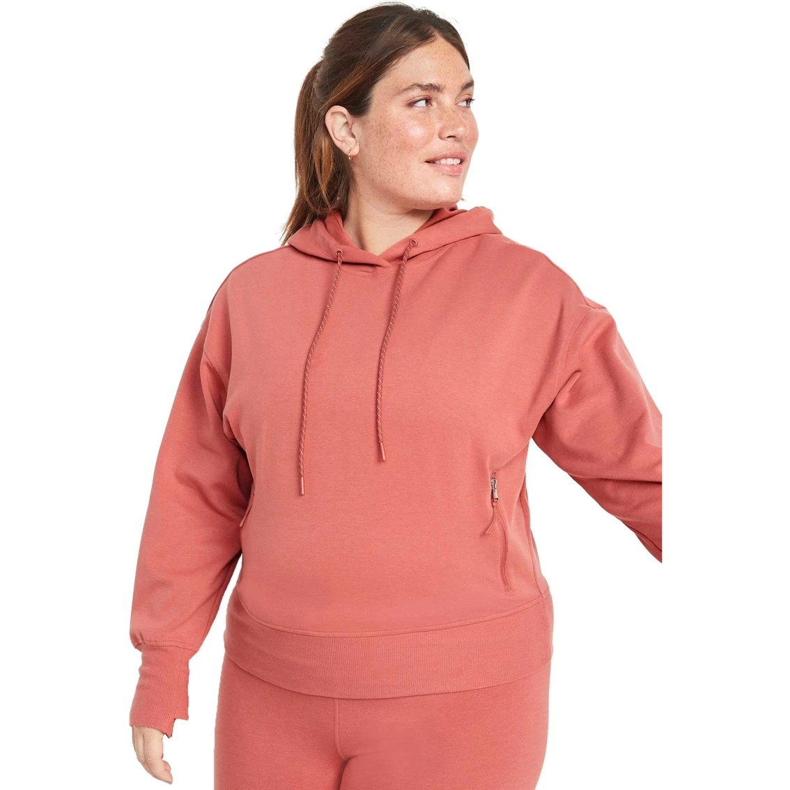 – The Dynamic Fleece hoodie hits high on hip