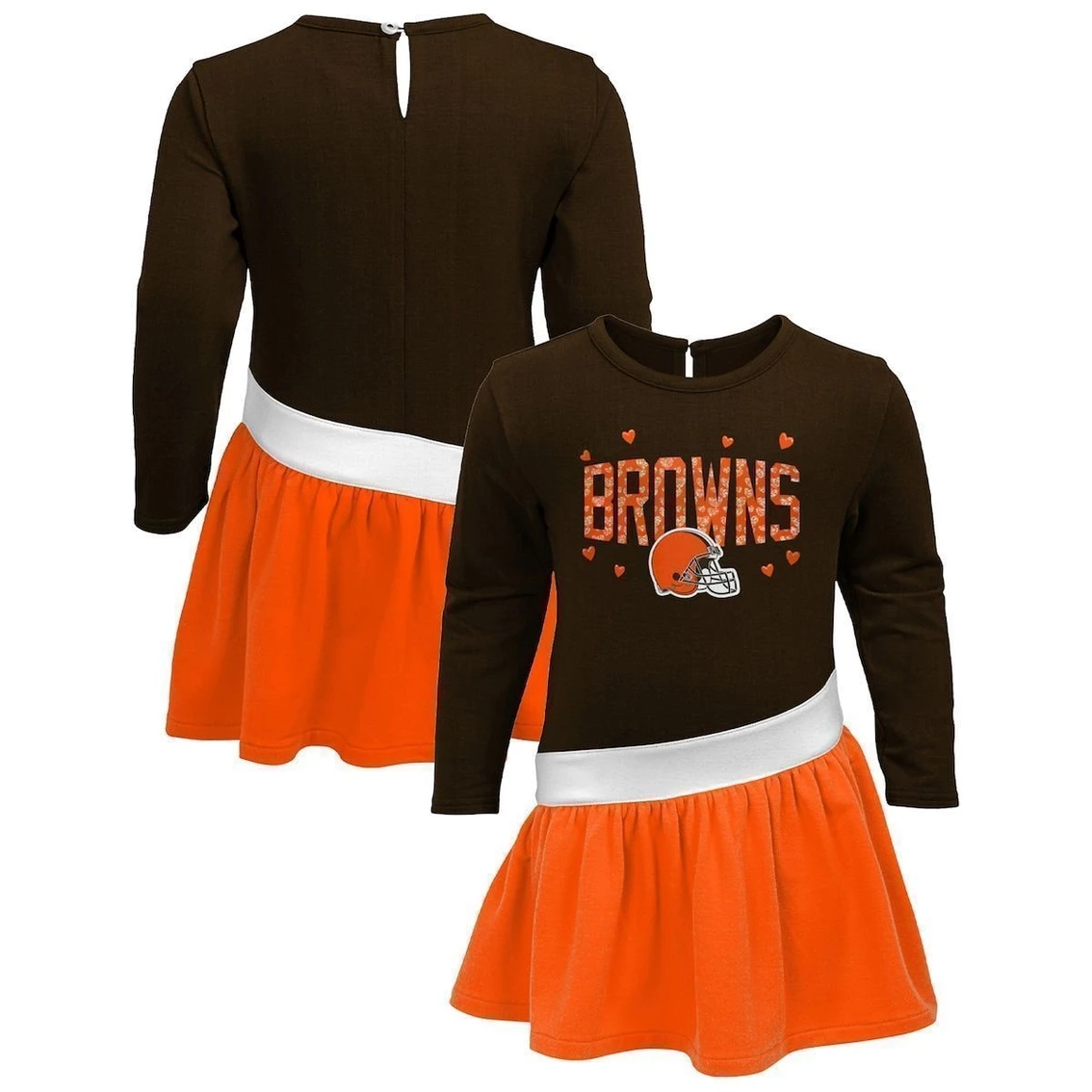 - Prepare your little one for game day in true Cleveland Browns fashion with this adorable Heart to Heart Jersey dress. It’s designed with lovable Cleveland Browns graphics and plenty of hearts, so everyone can see which squad your fam roots for. Not to mention, the extra-soft tri-blend material is sure to keep your youngster comfortable.