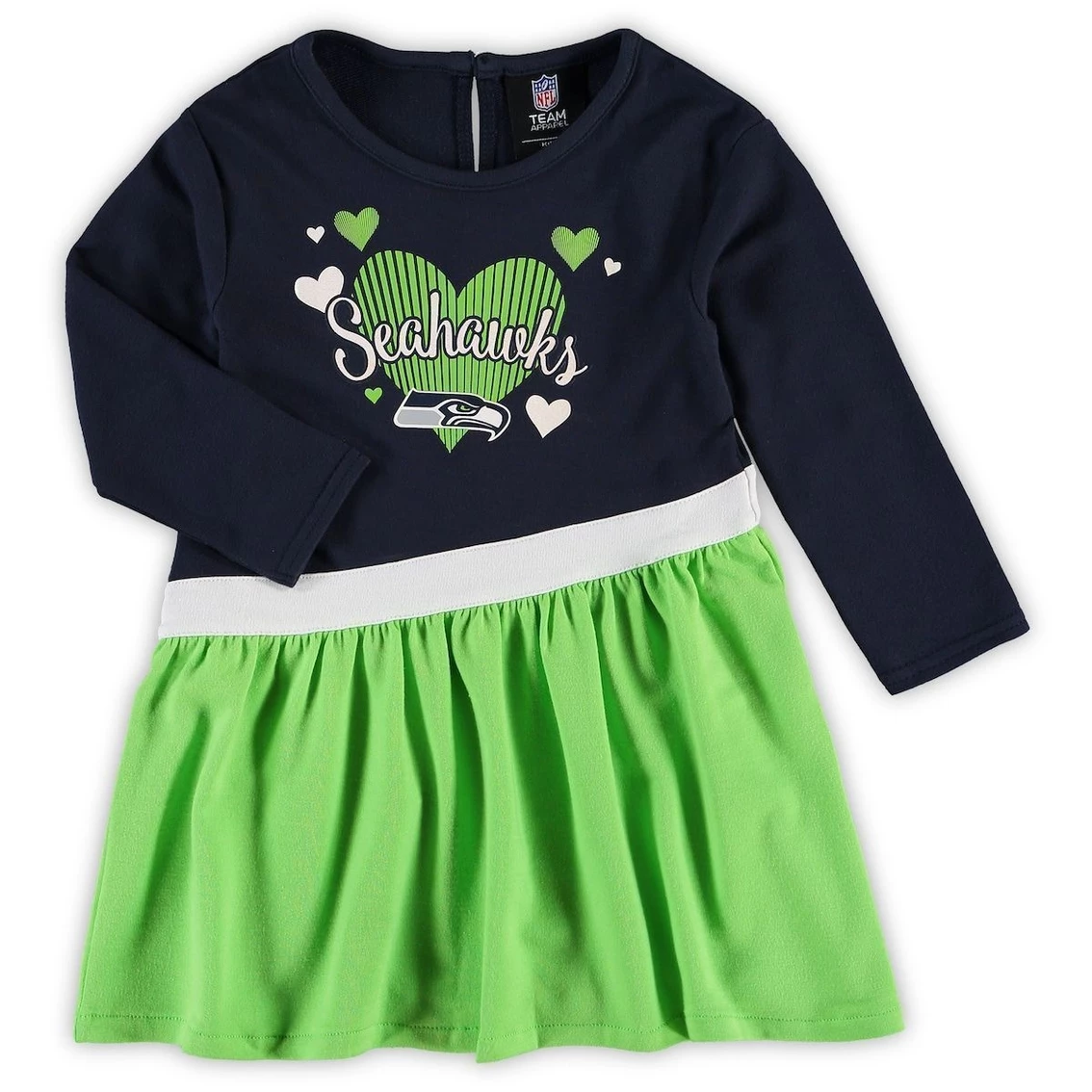 - Is your kiddo ready to support the Seattle Seahawks on game day? Your adorable young fan will be prepared for kickoff when they have this All Hearts Jersey dress. It is designed with team graphics and plenty of hearts so everyone can see which NFL squad your family is rooting for.