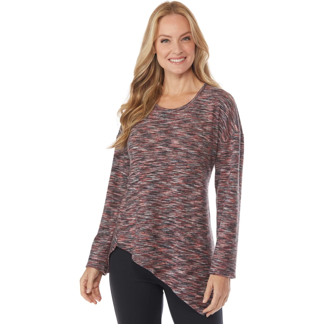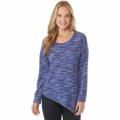 Dress it up in this Passports Assym Hem Tunic – made from a poly/spandex slub jersey construction for comfort. This tunic is machine washable for easy care. Space dye assym uneven. Hem tunic length. Drop shoulder. Style: ER1112943B.