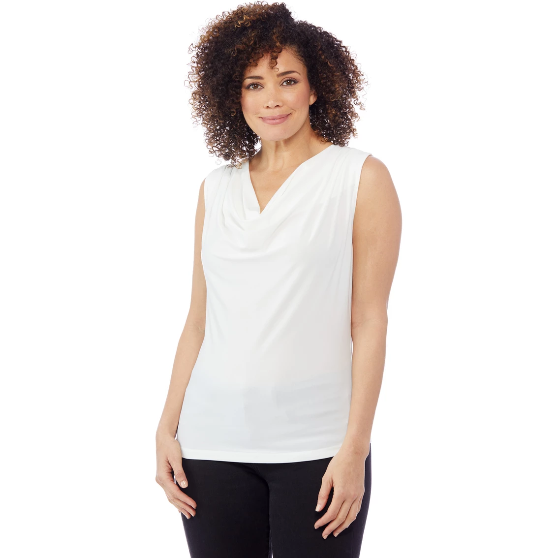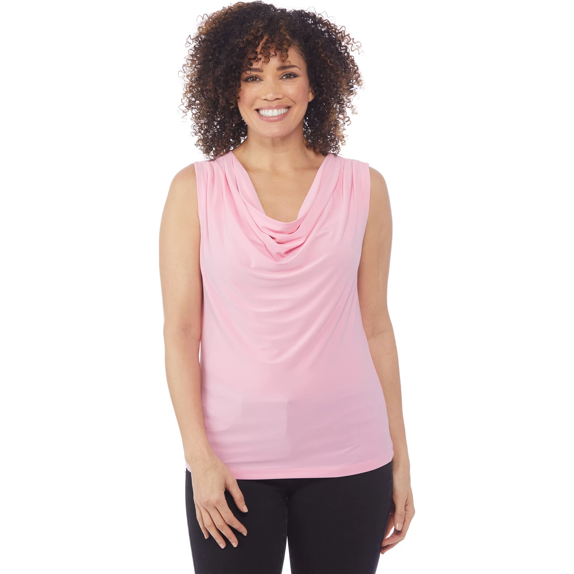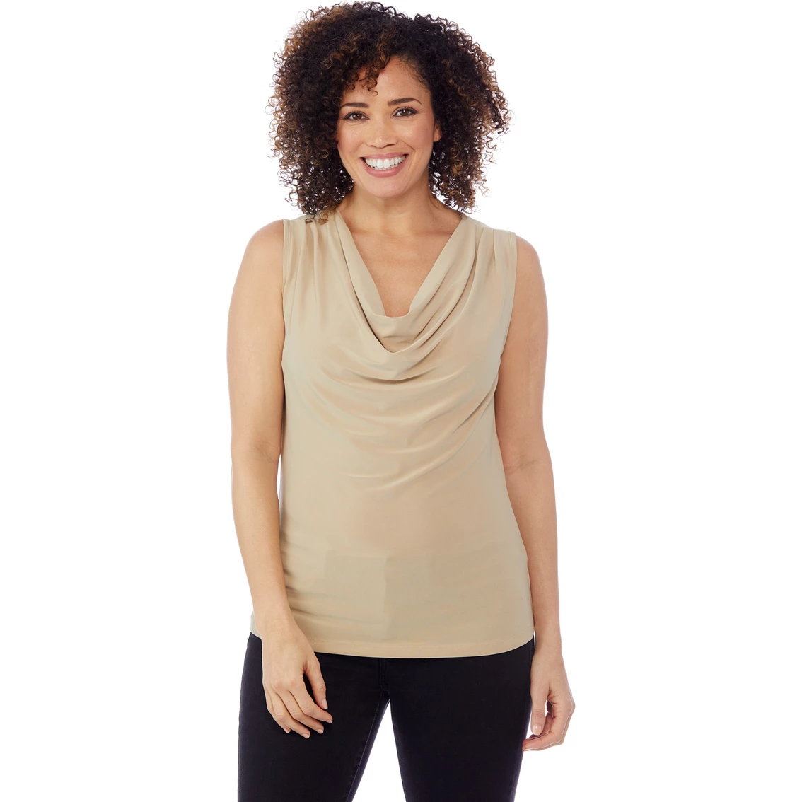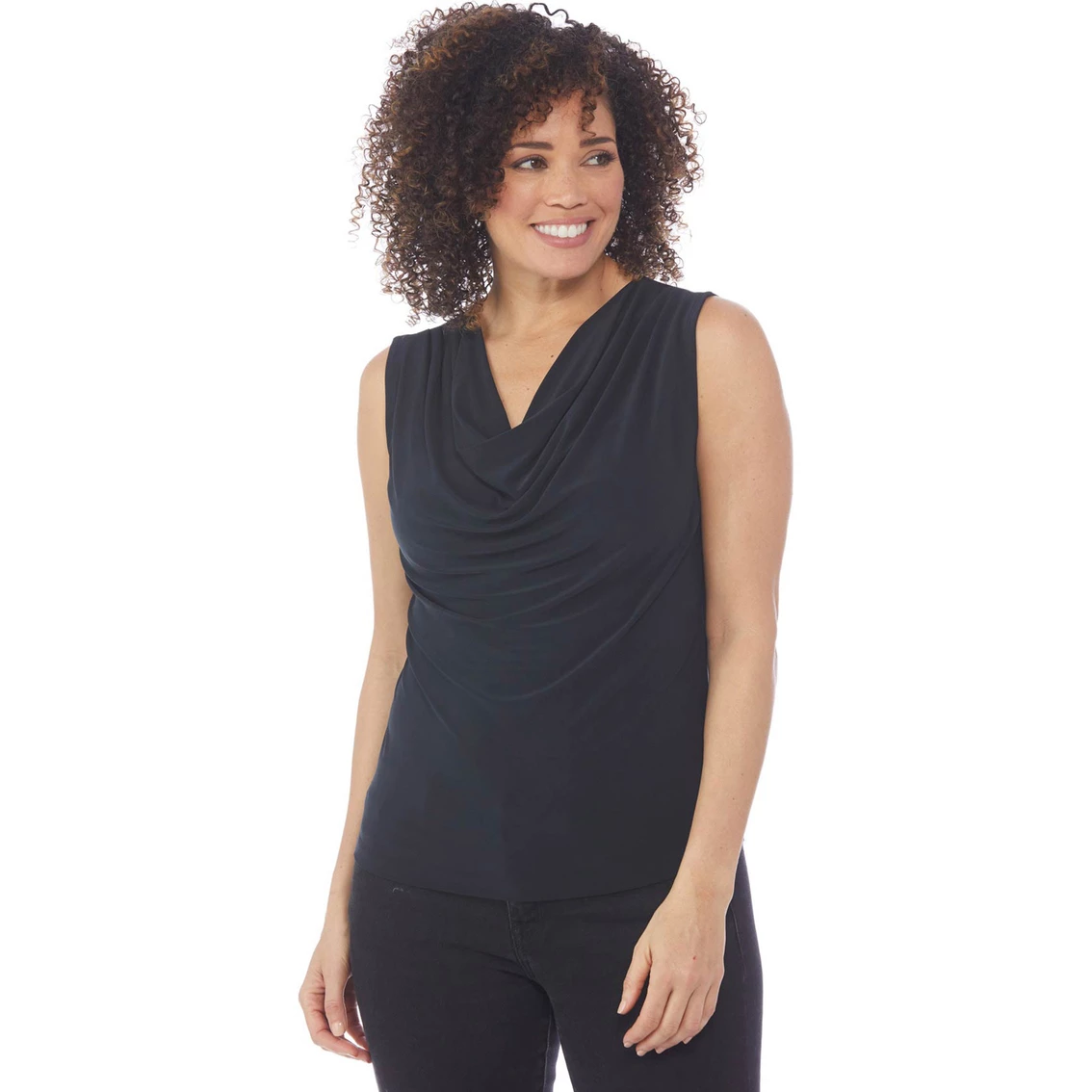 This cute top from Passports offers a fashionable start to a great looking ensemble.. The Sleeveless Drape Neck Tank Top is made of polyester/spandex ITY fabric and is machine washable. Wherever you go, get there in style with Passports. Style: PDNTA.
