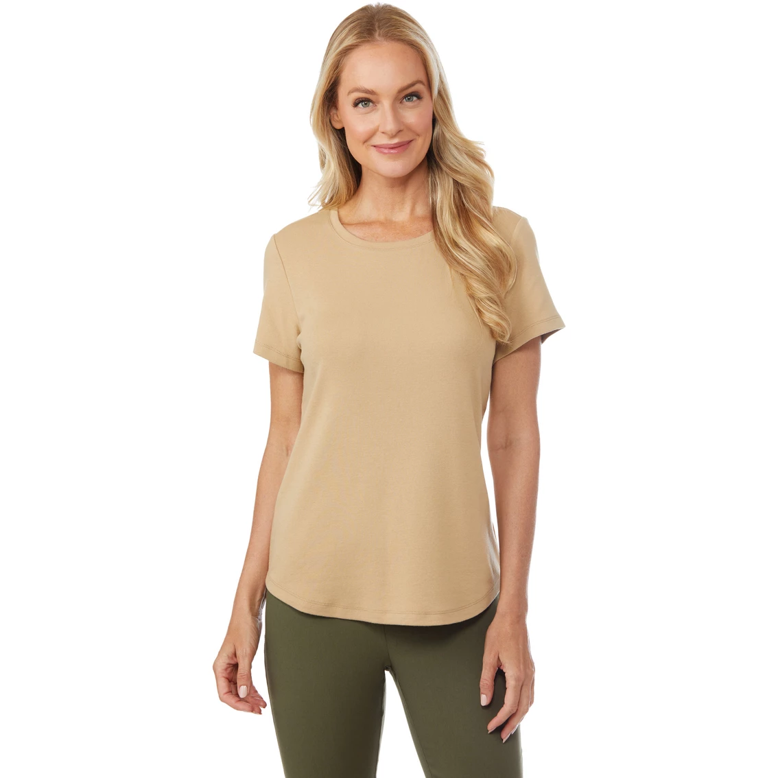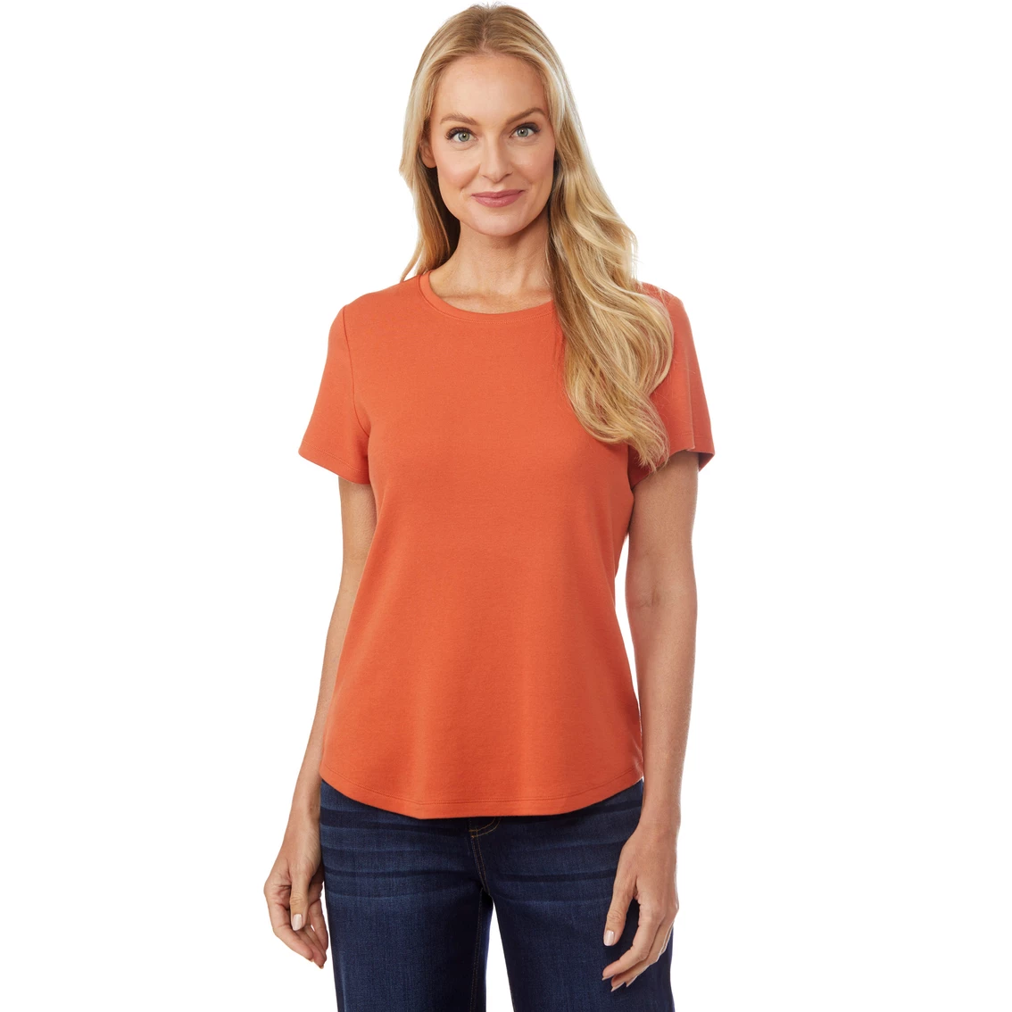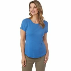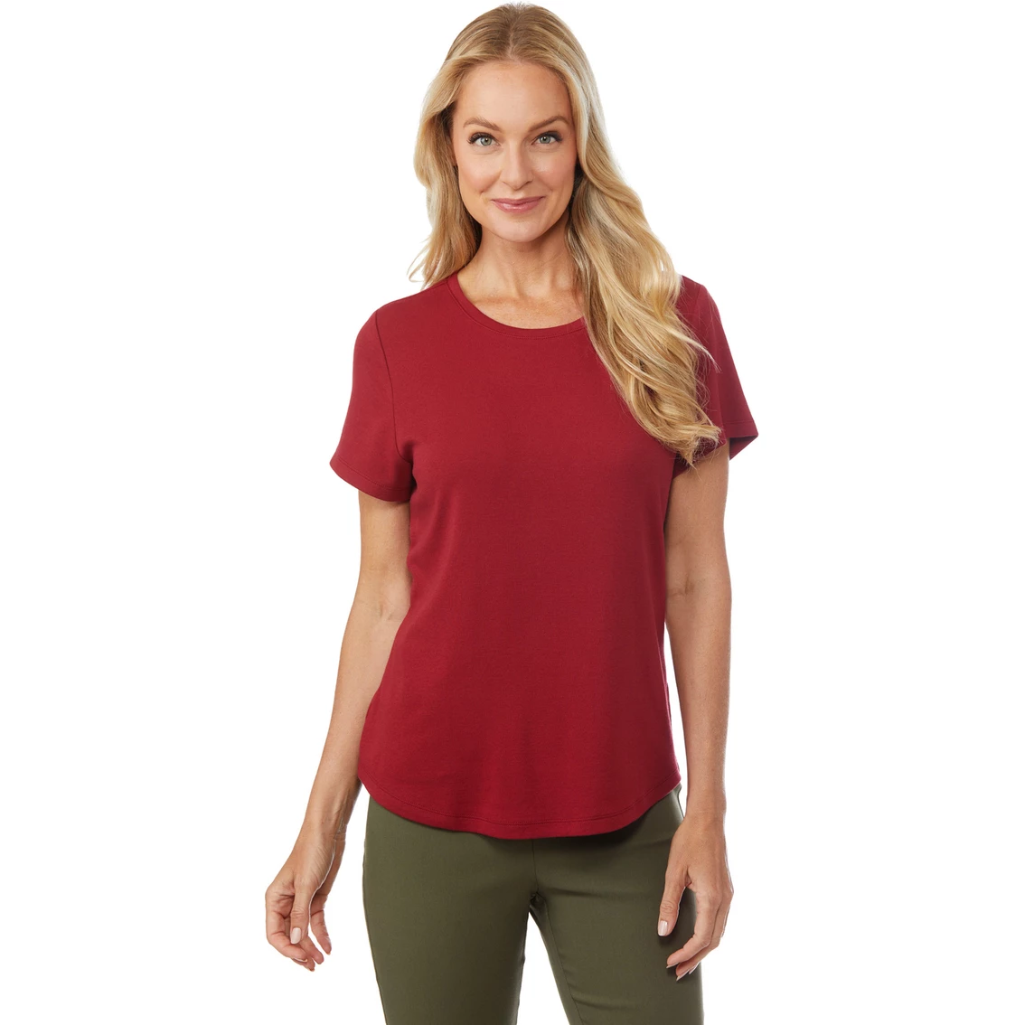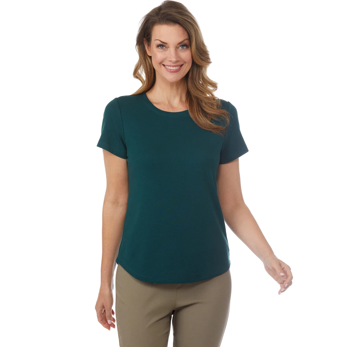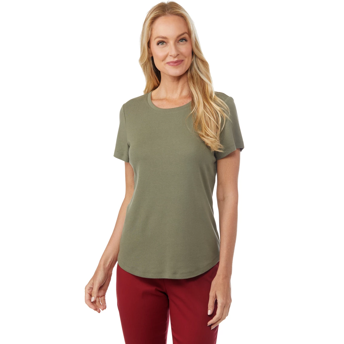 Crafted from soft, durable cotton and modal with a bit of spandex stretch, you will grab this Scoop Neck Knit Basic Tee from Passports every time (and in every color)! The ribbed tee features a scoop neckline and short sleeves. Machine washable for easy care. Style: PPS2102F22A.