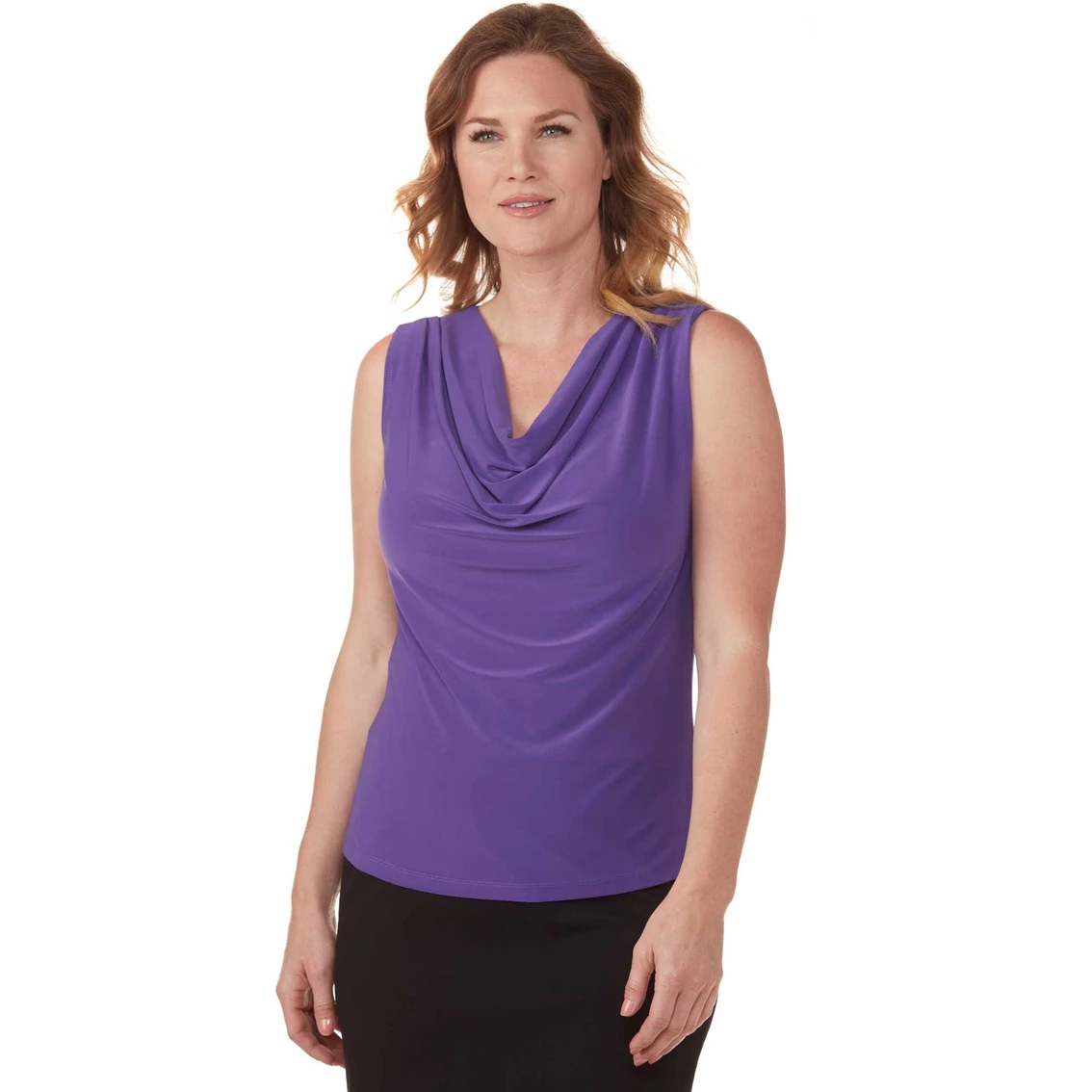 The Passports Drape Neck Tank Top is breathable and stretchy, great for casual all day wear. It’s made with a polyester and spandex blend material and is easy to care for because it can be machine washed. Style: PDNTRK.