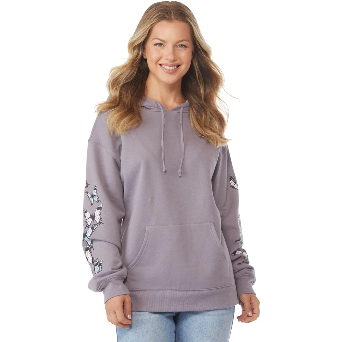 Keep warm and let your style transform in this stylish hoodie from Rebellious One. Crafted from soft, cozy fleece, this hoodie features long sleeves, a butterfly graphic and hood. Style: BA4996AX2701.