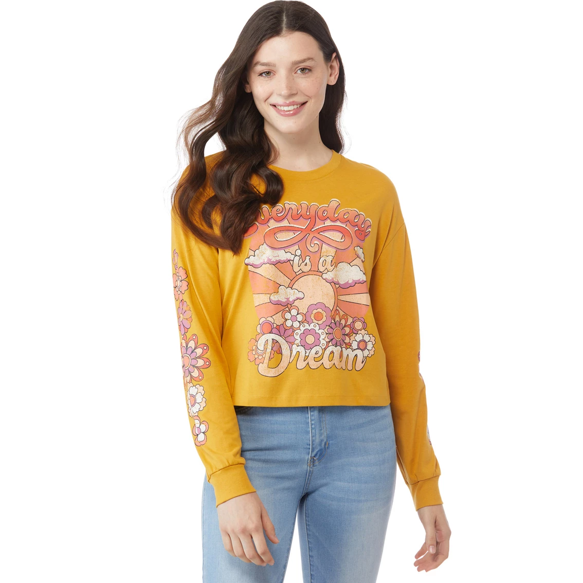 Stay groovy in this mustard “Dreams” long-sleeve tee from Rebellious One! It pairs perfectly with your favorite jeans. Style: BA1345JX2742.