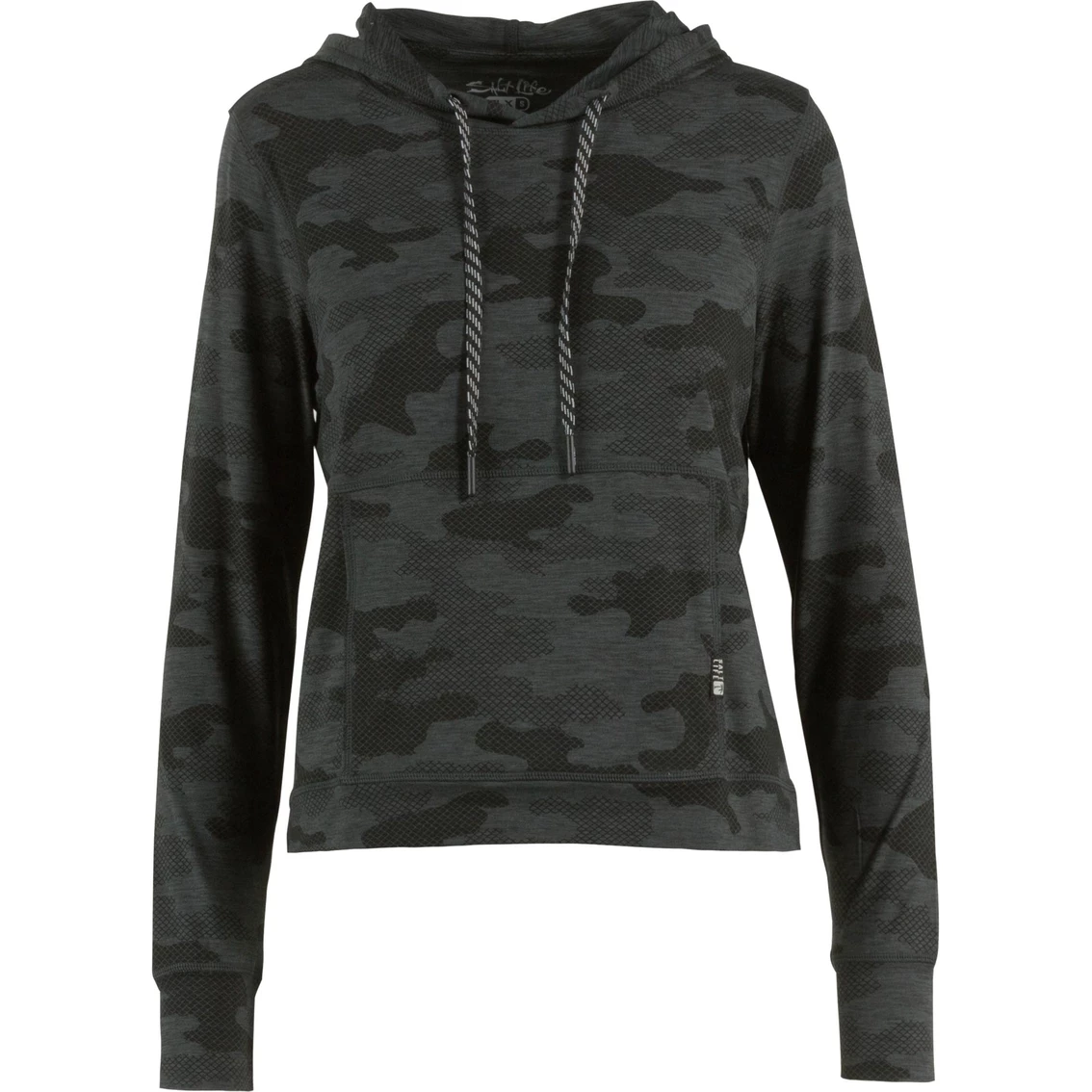 A comfortable, cozy women’s hoodie from Salt Life. The Endurance Camo long sleeve pullover hoodie is a great addition to your wardrobe. Features include a front pocket, bottom band, side vents, flatlock stitching and moisture wicking, antimicrobial properties. Available in multiple colors, this Salt Life performance hoodie is perfect for casual wear and layering during transitioning weather. Style: SLJ6059003.
